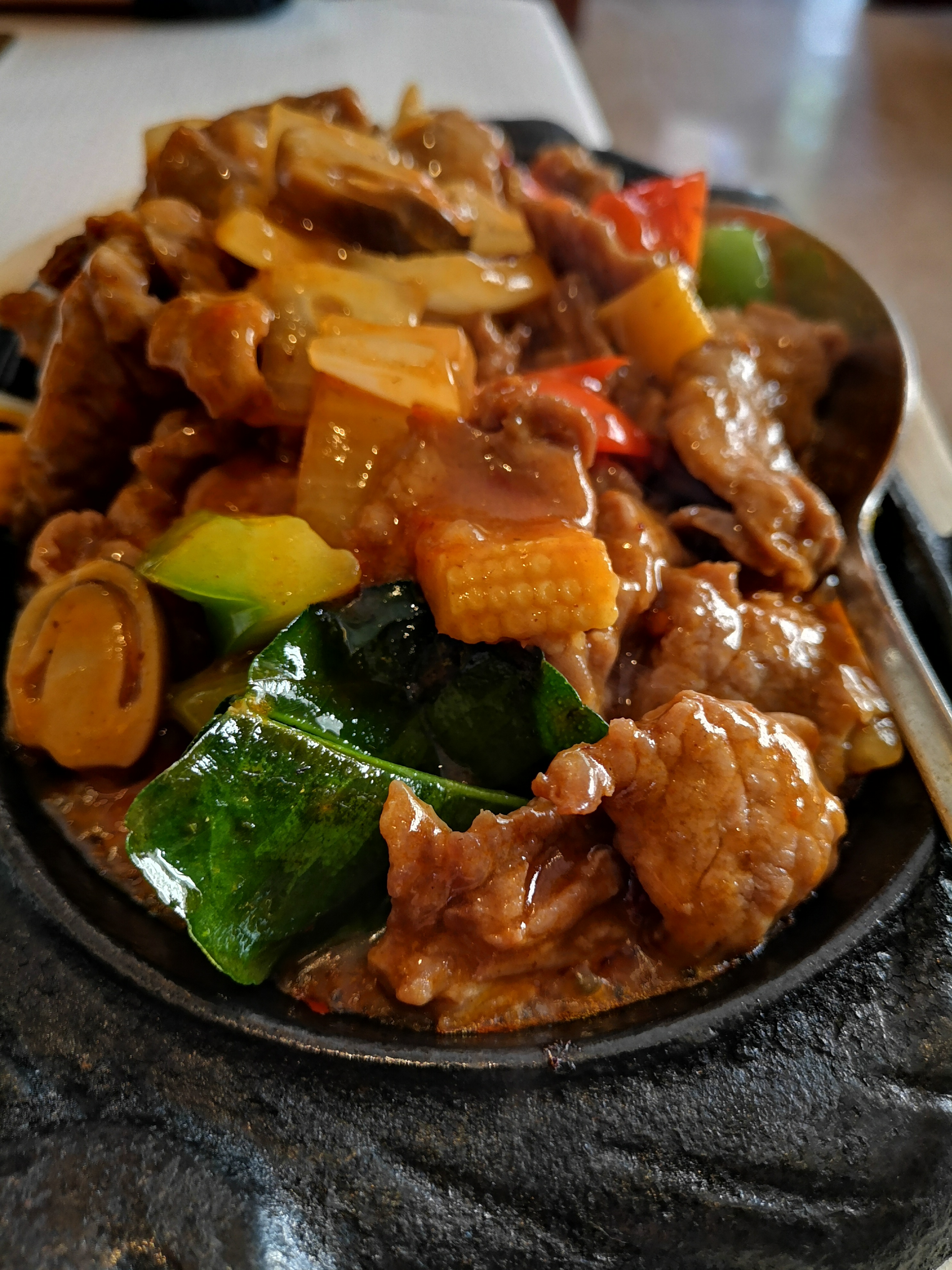 Testé ce jour le boeuf au poivre noir sur plaque chauffante: excellent. Très bon riz cantonais comme d'habitude.