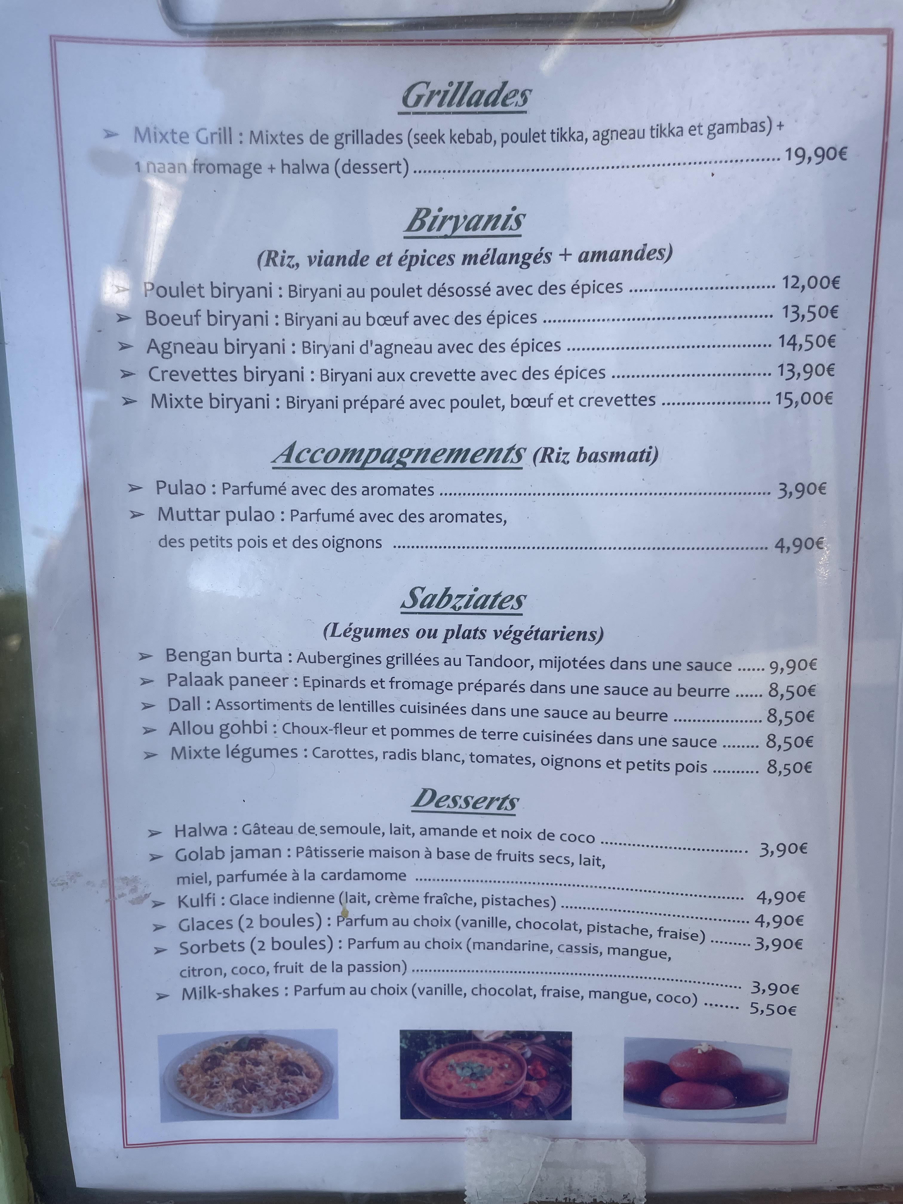 Nourriture fantastique et bon service. La portion d'agneau madras était un peu plus petite que ce à quoi je m'attendais - c'était 5 à 6 morceaux de viande - mais c'est probablement normal et ce n'était pas un problème puisque j'avais aussi d'autres choses. Le milkshake à la vanille était excellent, exactement ce que je cherchais ! Je recommande vivement cet endroit, meilleur repas que j'ai eu à Cahors !
