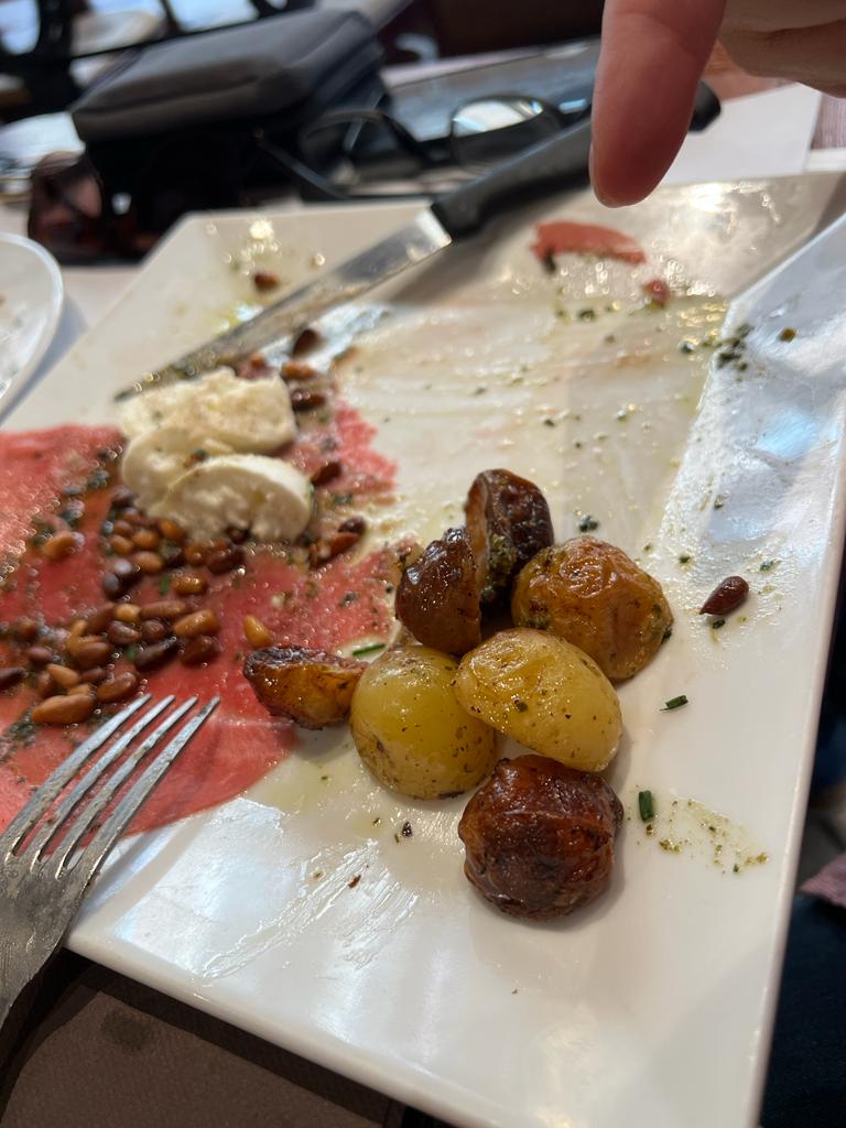 Pas génial dans l'ensemble.. Les serveurs étaient assez gentils, la nourriture avait l'air bonne et avait un goût correct. J'avais une coccinelle dans ma salade. J'ai dit au serveur, aucune excuse, aucune offre d'une nouvelle salade. avant de payer, un autre serveur m'a demandé si tout allait bien. J'ai évoqué le bug, il a regardé mon chèque (occasion parfaite d'offrir l'espresso gratuitement en guise d'excuses)... Rien. Tout ce que j'ai eu, c'est un visage bouleversé et un ah. J'avais un menu : La salade susmentionnée accompagnait du melon et du jambon.. mais seulement deux tranches de jambon :( Le plat principal était des cuisses de grenouilles. Ils manquaient complètement de sel et étaient trempés dans l'huile, tout comme mes doigts après les avoir mangés. Pour 44 €, je m'attendais au moins à un petit accompagnement.