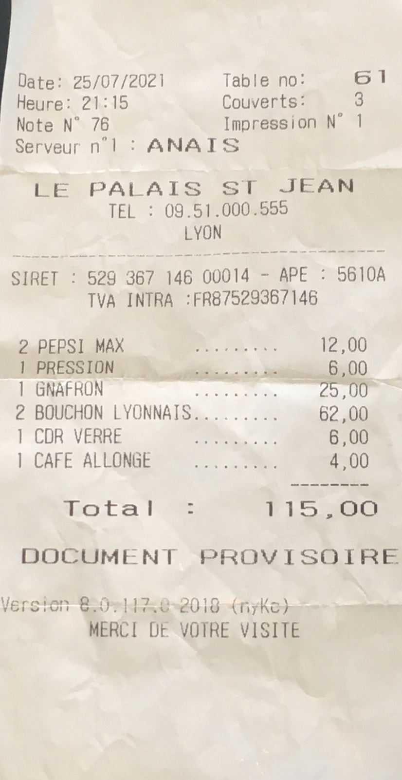 J'avais vu la note avant, et j'ai décidé d'y aller quand même, car il y a un plat au menu que je tenais vraiment à goûter. Franchement, j'en avais déjà mangé ailleurs et je dois dire que c'était assez moyen pour le prix. Peu de goût. J'ai plus ou moins eu l'impression d'être dans un attrape touristes. Il y a de meilleurs bouchons à Lyon.