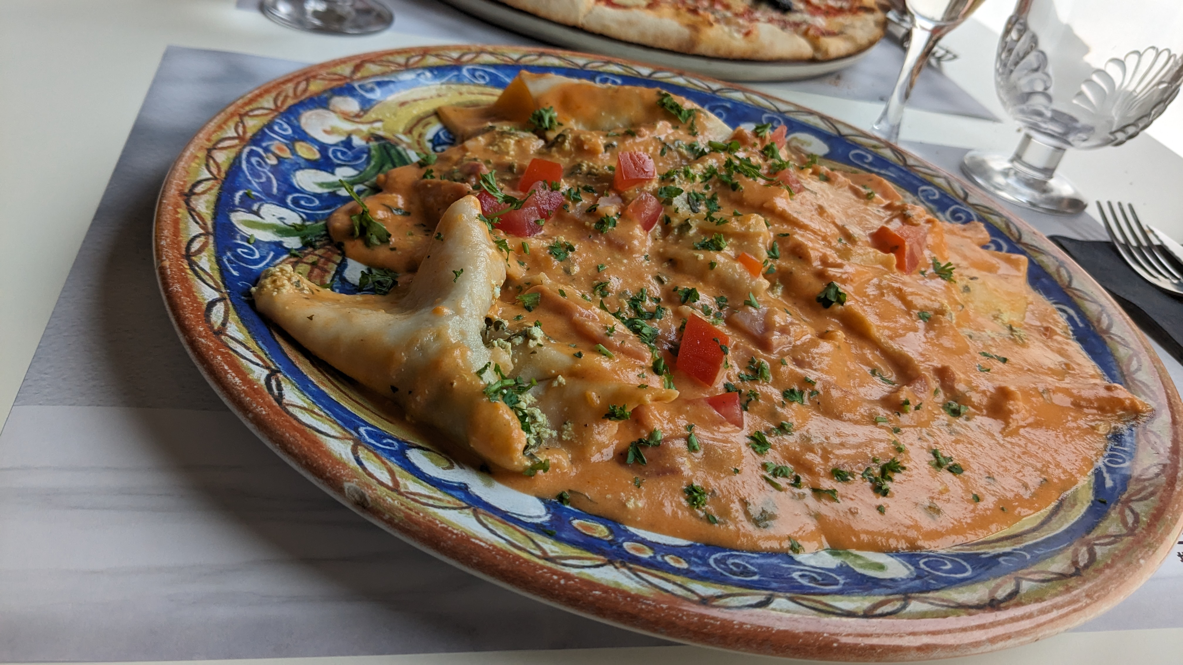 Première fois dans ce resto. L'accueil à été sympathique. La salle mériterait un petit coup de jeune avec une nouvelle décoration. Je regrette le fait que l'on soit un peu les uns sur les autres ce qui rend la salle bruyante. Il y faisait également un peu chaud. Niveau plats, pâtes au saumon qui clairement ne sont pas terribles du tout. Un tris di pasta dans lesquelles une des 3 spécialités était un peu fade, sans réel goût, les deux autres en revanche étaient bonnes. Nous avons pris deux calzones, le nuovo qui était délicieux et le spécial fromage qui était bon mais un peu écœurant à la fin. Concernant les desserts, nous avons pris un tiramisu qui était bon sans être exceptionnel et une panna cotta fruits rouges, celle ci était bonne si ce n'est le coulis de fruits rouges qui était plutôt de l'eau rouge. Bref, avis mitigé sur ce restaurant. Je ne pense plus y revenir.