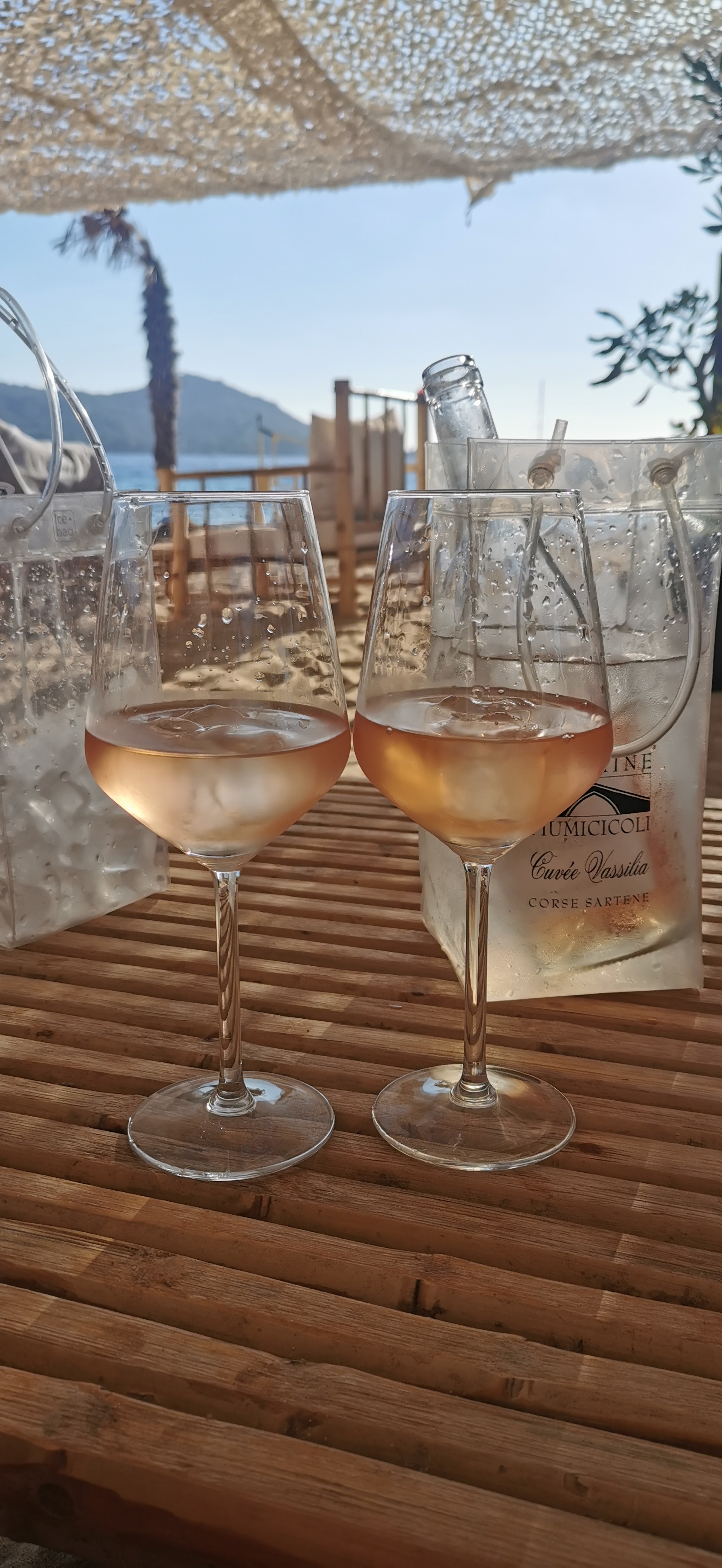 On c est juste arrêté sur la très belle plage se désaltérer les pieds dans l eau et admirer la mer simplement le bonheur seule la Corse et la Bretagne ont des paysages magnifiques