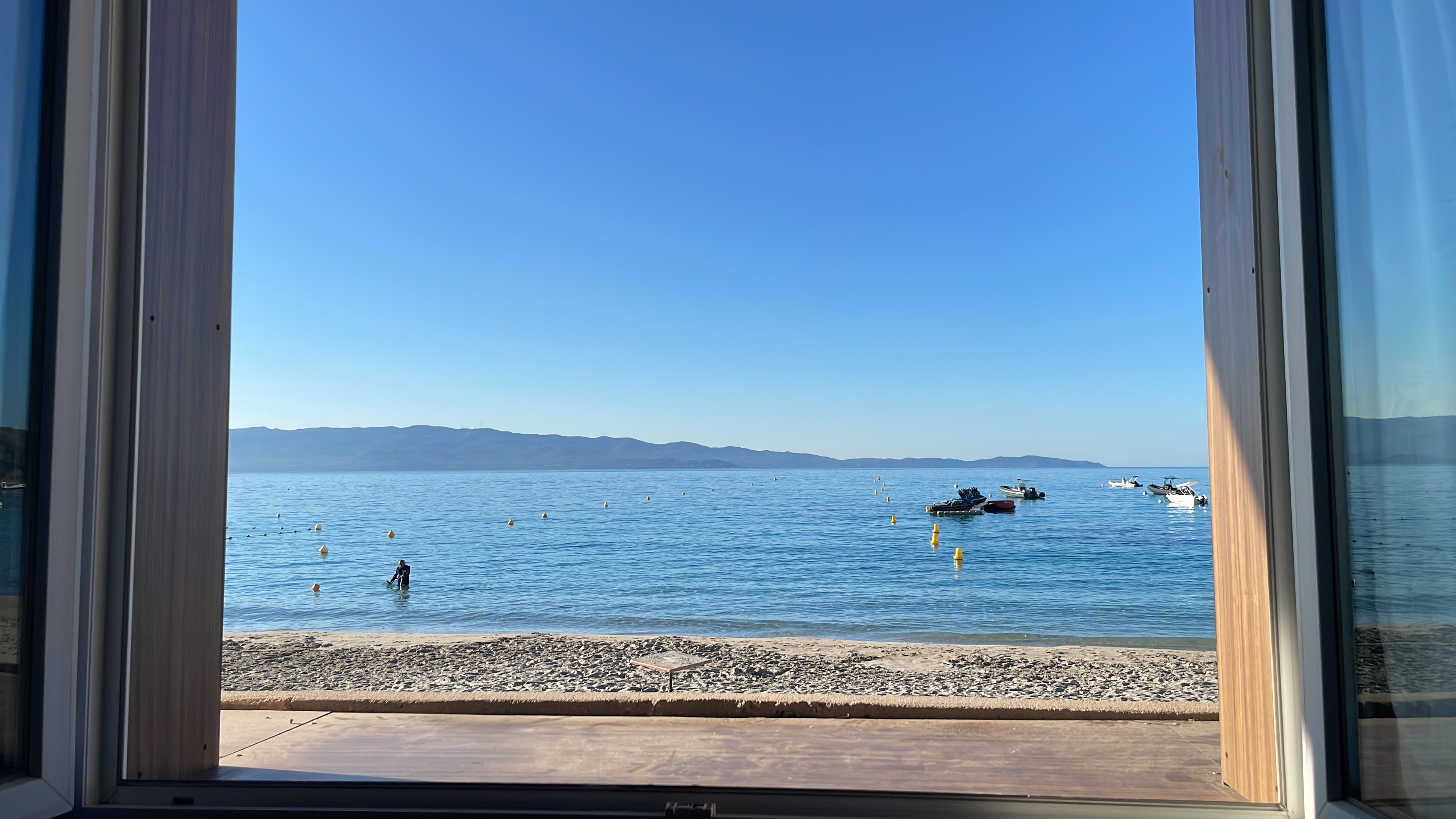L'hôtel est très bien situé, il y a une très jolie plage juste sous les fenêtres des chambres. Nous avons reçu un excellent accueil de la réceptionniste qui était très sympathique. Les chambres sont très belles et le petit déjeuner est bon.