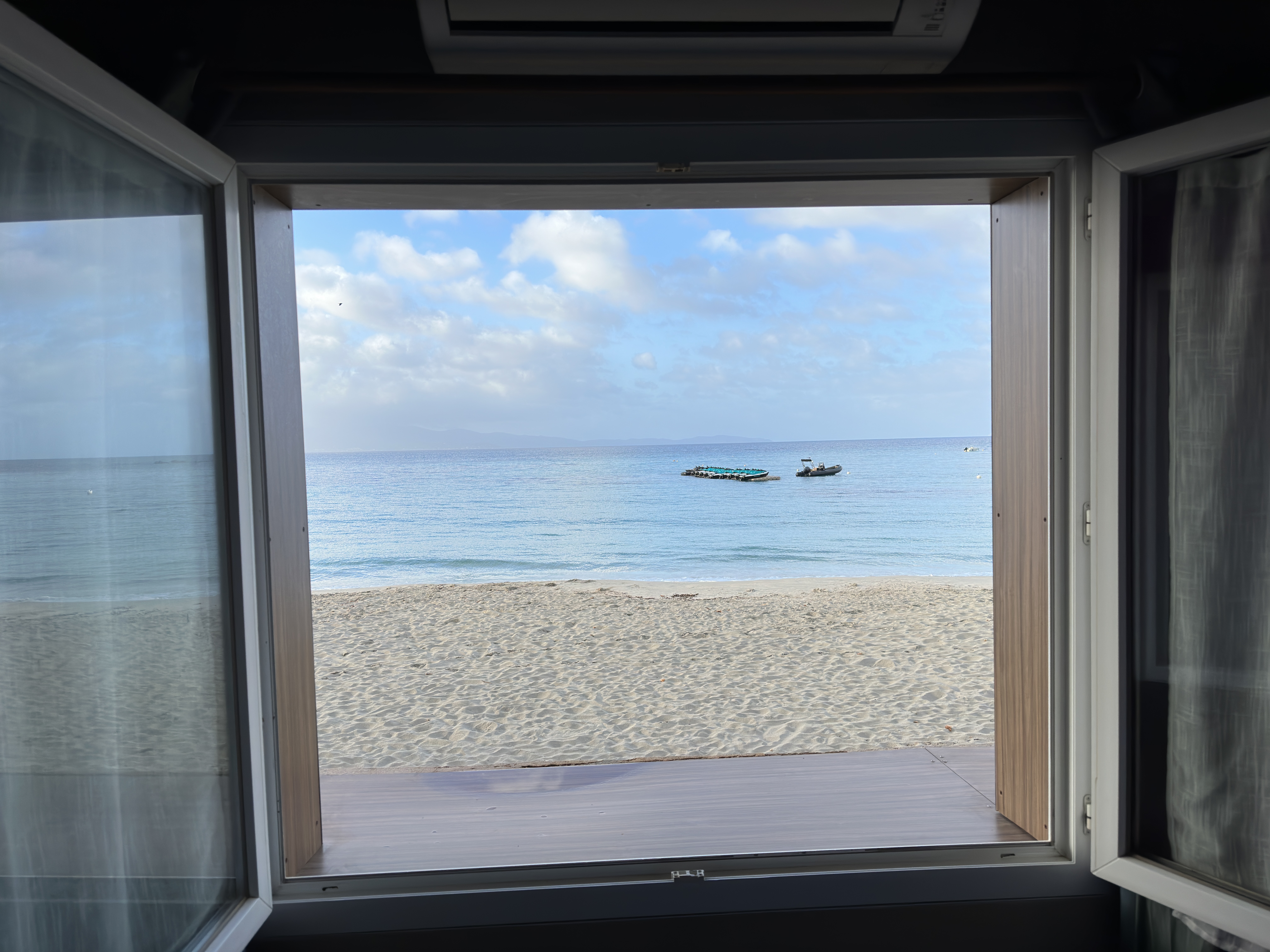 Chambre confortable et spacieuse en direct sur la plage. Le cadre est superbe mais l'accueil est froid et pas à la hauteur du standard corse. Quand au petit déjeuner, indigne d'un 4 étoiles : quelques viennoiseries et un mauvais jus d'orange, pas de salé, laitage, fruits...