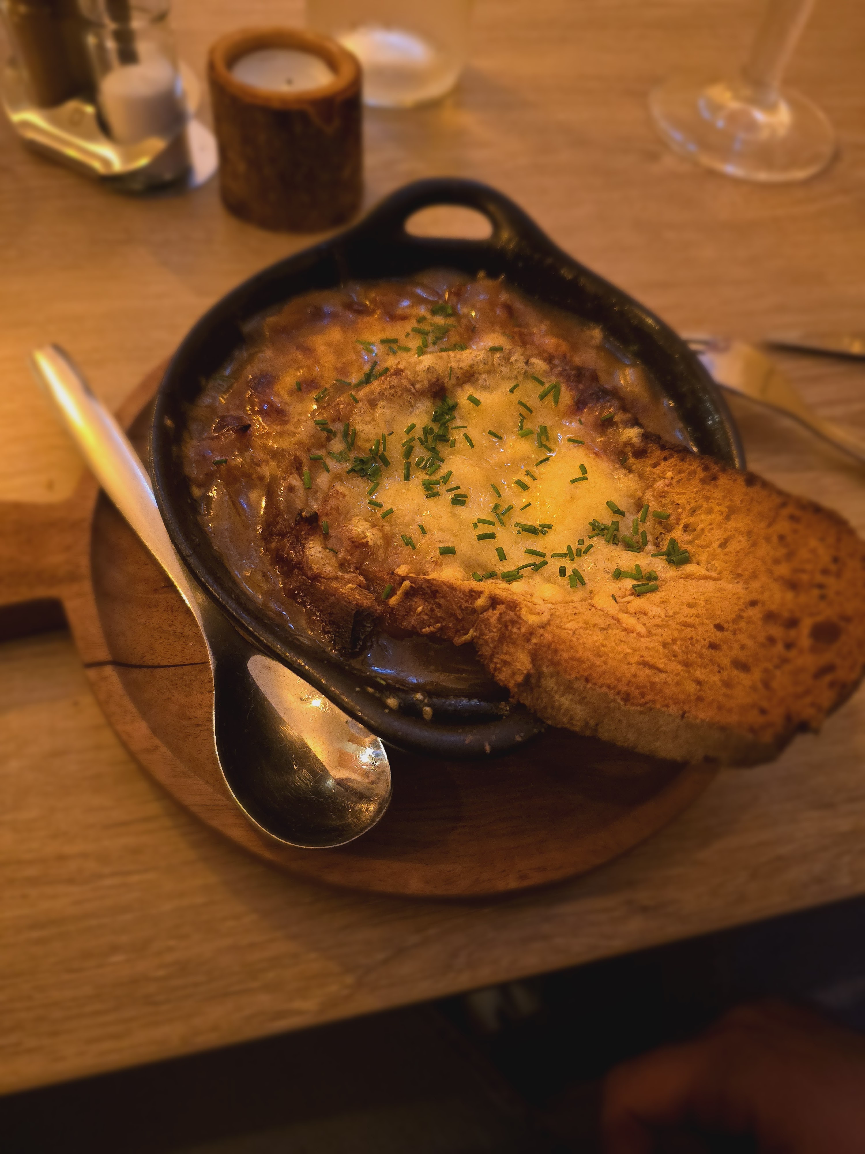 Accueil chaleureux, Margarita parfaite et bien dosée, soupe à l'oignon excellente, super fondue savoyarde... nous n'avons pas pris de dessert, plus la place . Tout nous a plu, on reviendra c'est certain.