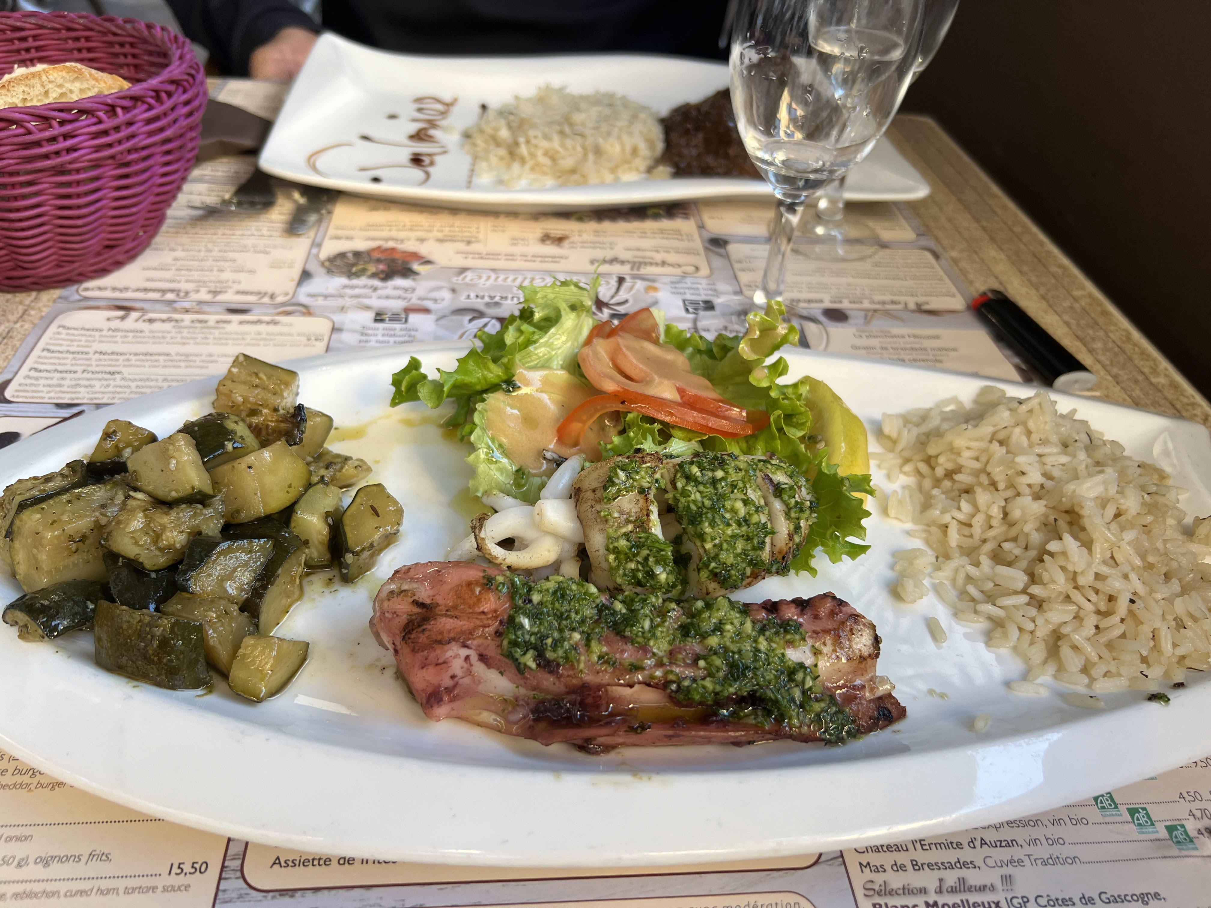 Ce soir, jour de féria, il y avait sangria, et une rouille aux poulpes, à se damner ! Équipe sympa, rigoureuse, on nous a demandé les pass, et prompt à accéder à nos demandes. Je reviendrai manger la rouille !