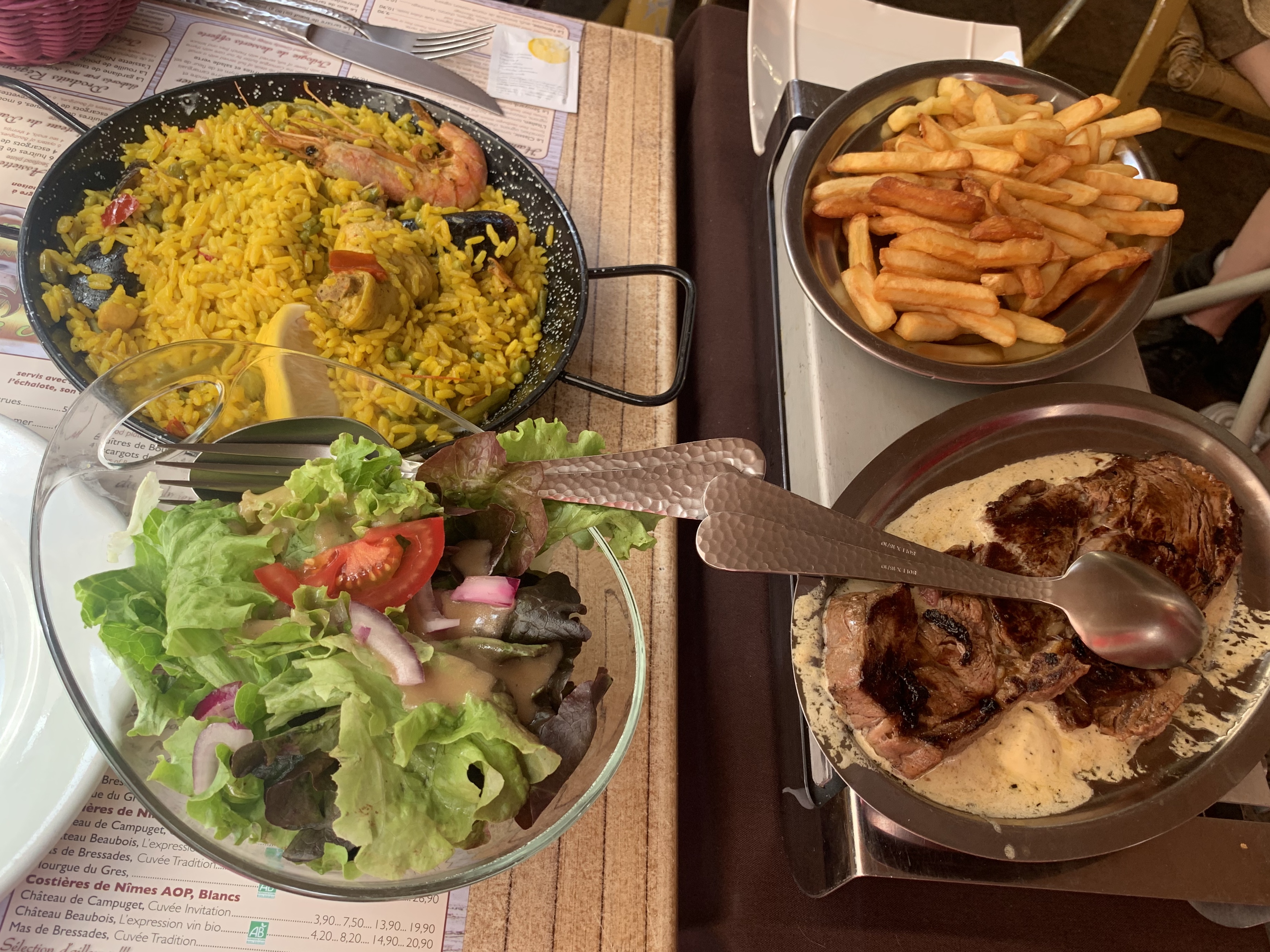 Dîner, accueil et service sympas. Paëlla et fruits de mer, dessert offert. Belle soirée nîmoise.