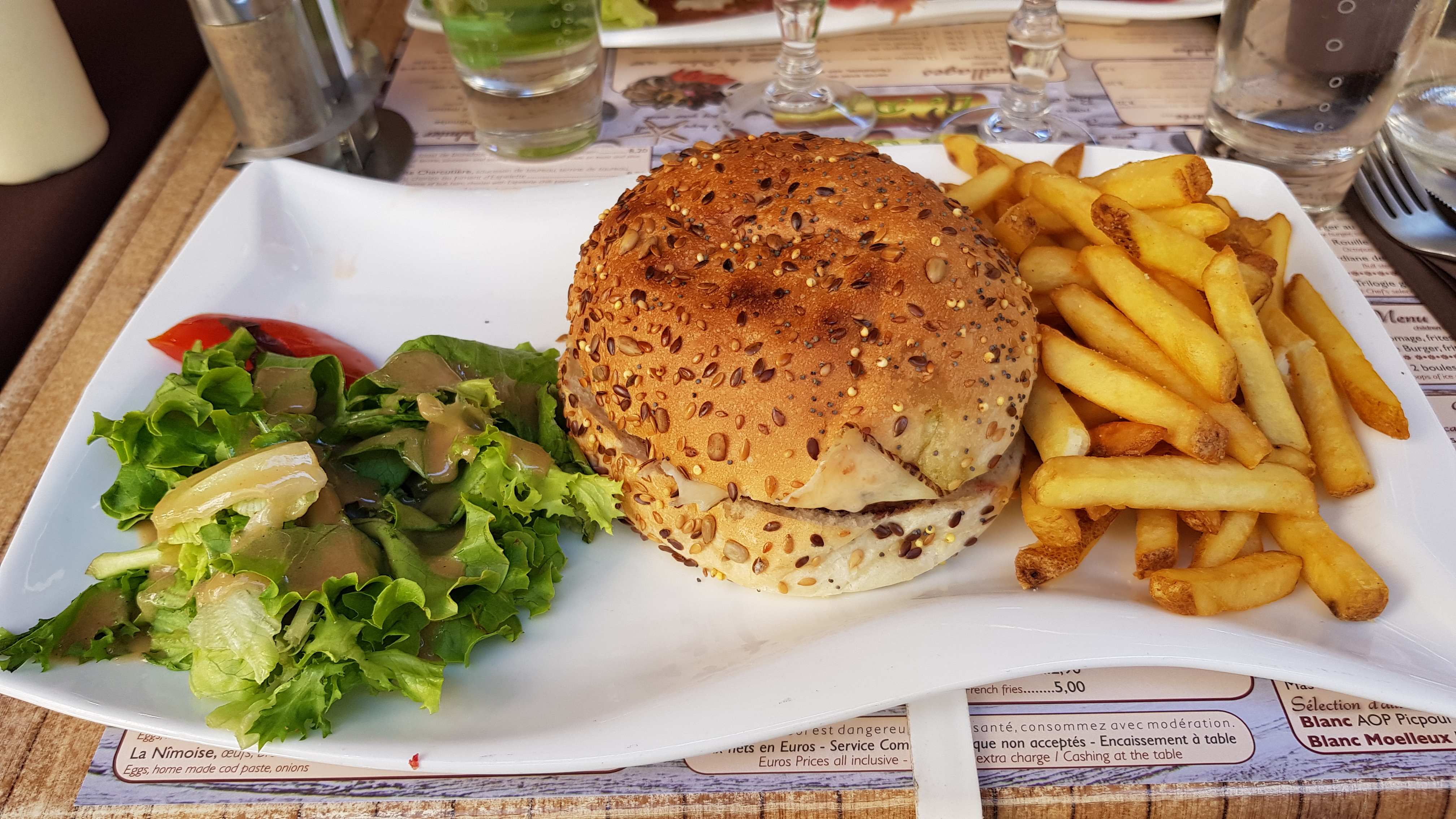 Nous avons très bien mangé, trois plats différents à trois et nous etions tous ravis ,le burger , la gardianne et des moules frites ont notre approbation ! Le service est parfait , efficace et sympa .En hiver il faut réserver car la salle est petite, l été la terrasse est grande , c'est peut-être différents. Nous recommandons vivement.