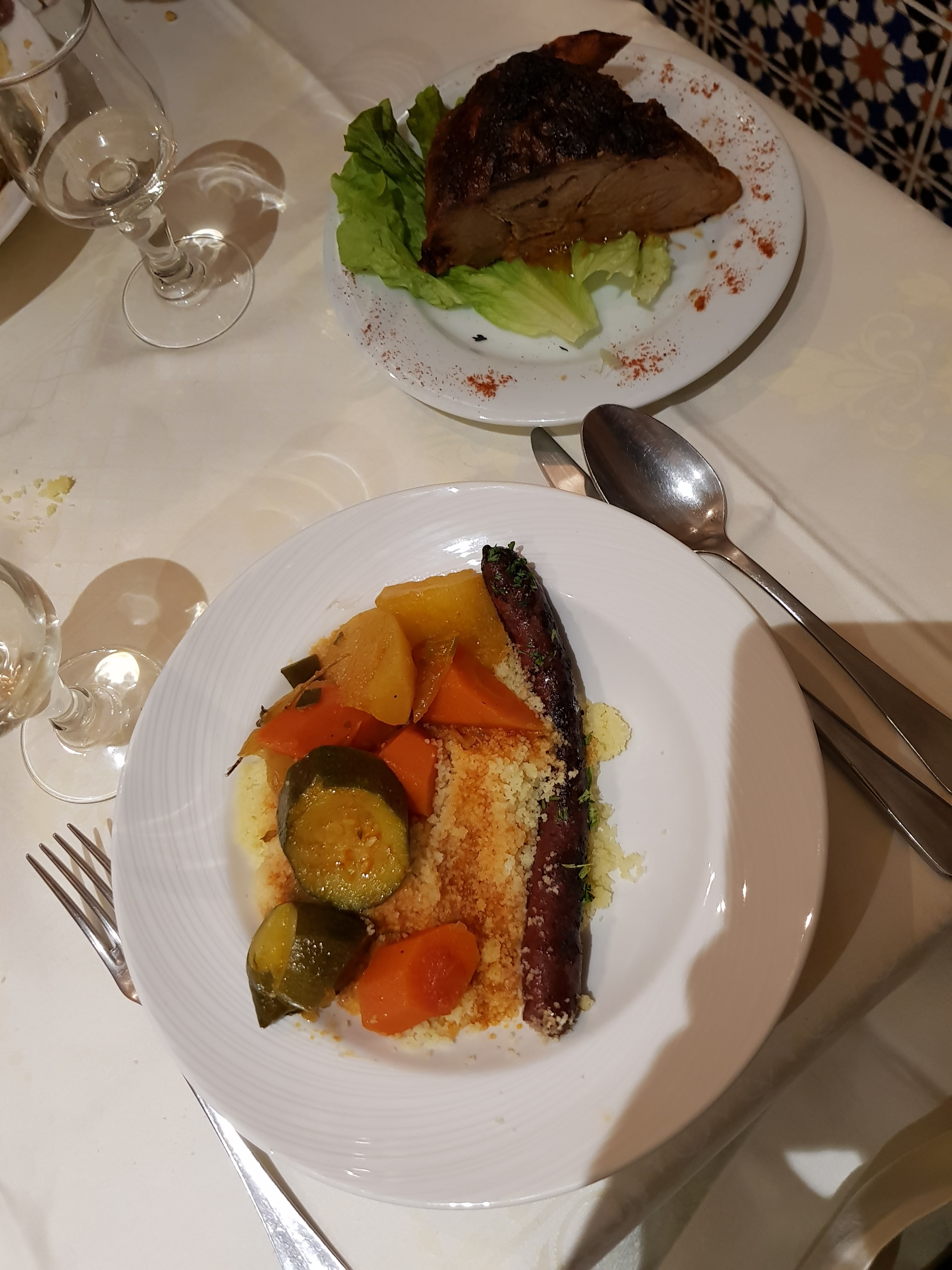 La tajine poulet raisin amende et le couscous royal toujours aussi bon je vous recommande ce restaurant un vrai plaisir.