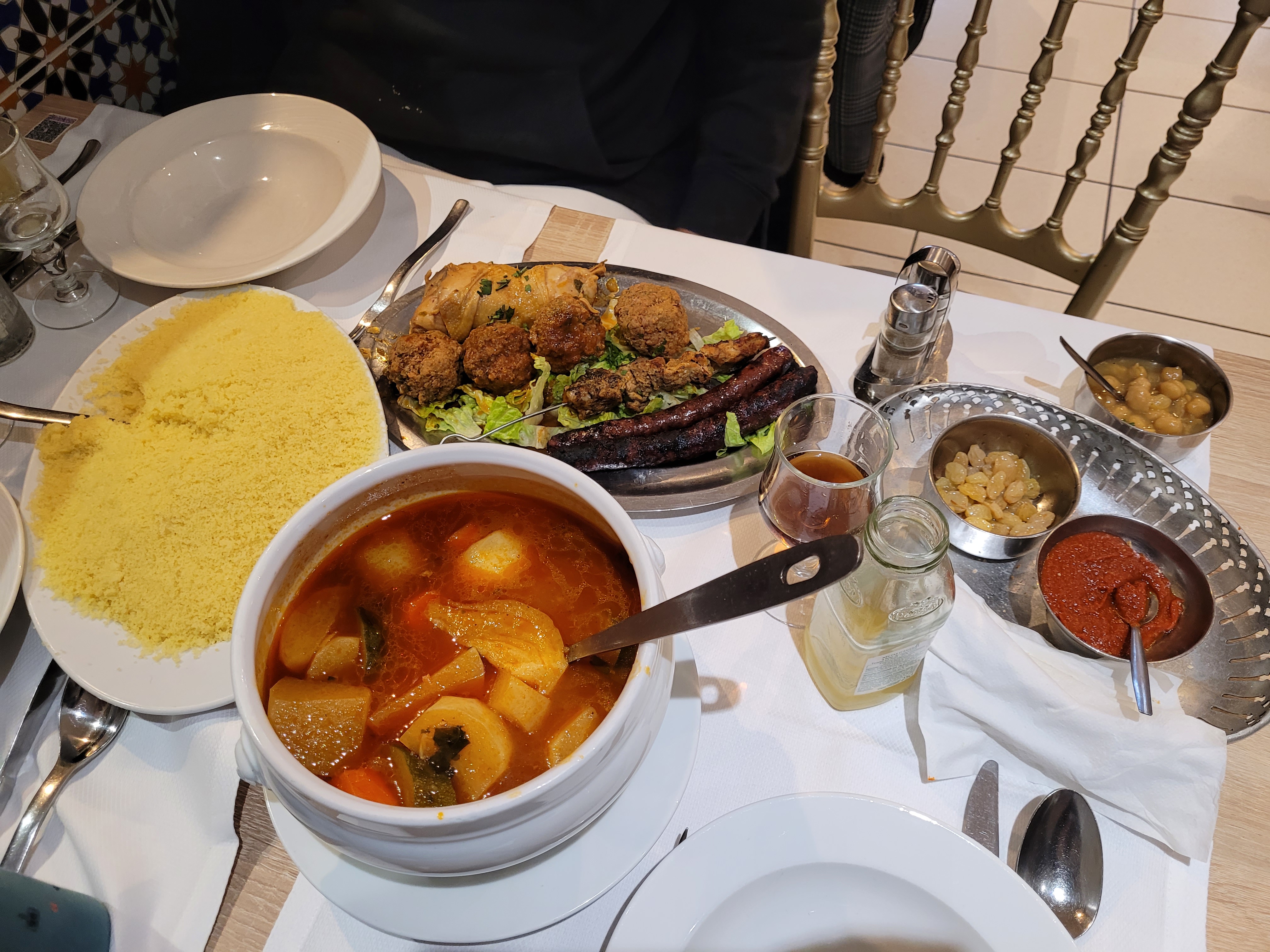 Très très bon couscous, les pâtisseries sont également très bonnes. J'aimerais simplement préciser pour les végétariens que le couscous nature (aux légumes quoi) est cuit avec la viande car j'y ai déjà retrouvé plusieurs fois quelques petits bouts de viande. Aussi, un des serveurs n'est vraiment pas très aimable ni accueillant mais en dehors de ça, on se régale !