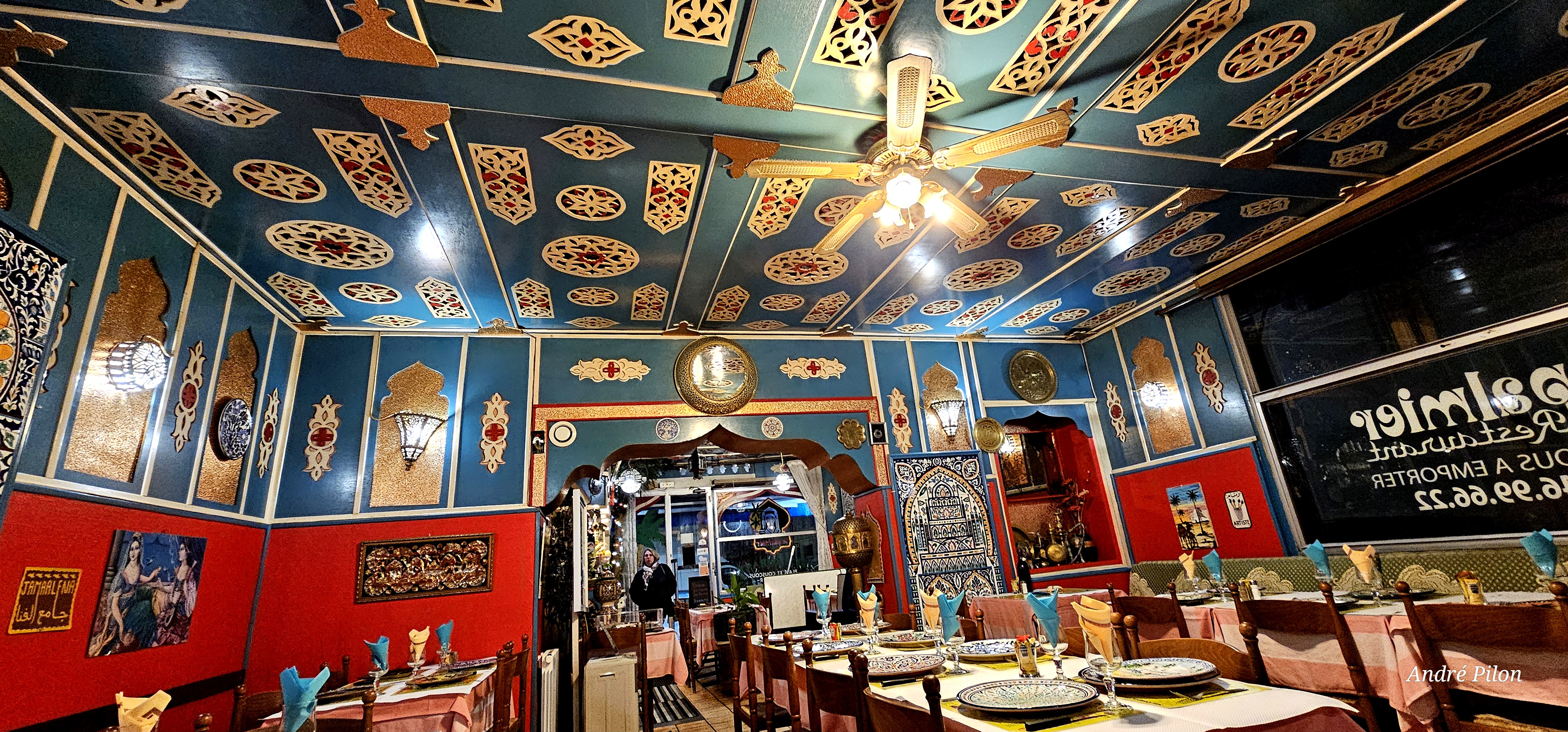 On rentre dans un restaurant aux couleurs du Maghreb, faïences sur les murs colorés, belles assiettes de là bas. ... serveuse dynamique et chef qui vient vous voir en salle. En ce qui concerne le couscous : un délice, dans la tradition, copieux, viande et légumes cuits à point. Semoule souple et onctueuse, normal le chef exerce depuis plus de trente ans ! A découvrir.