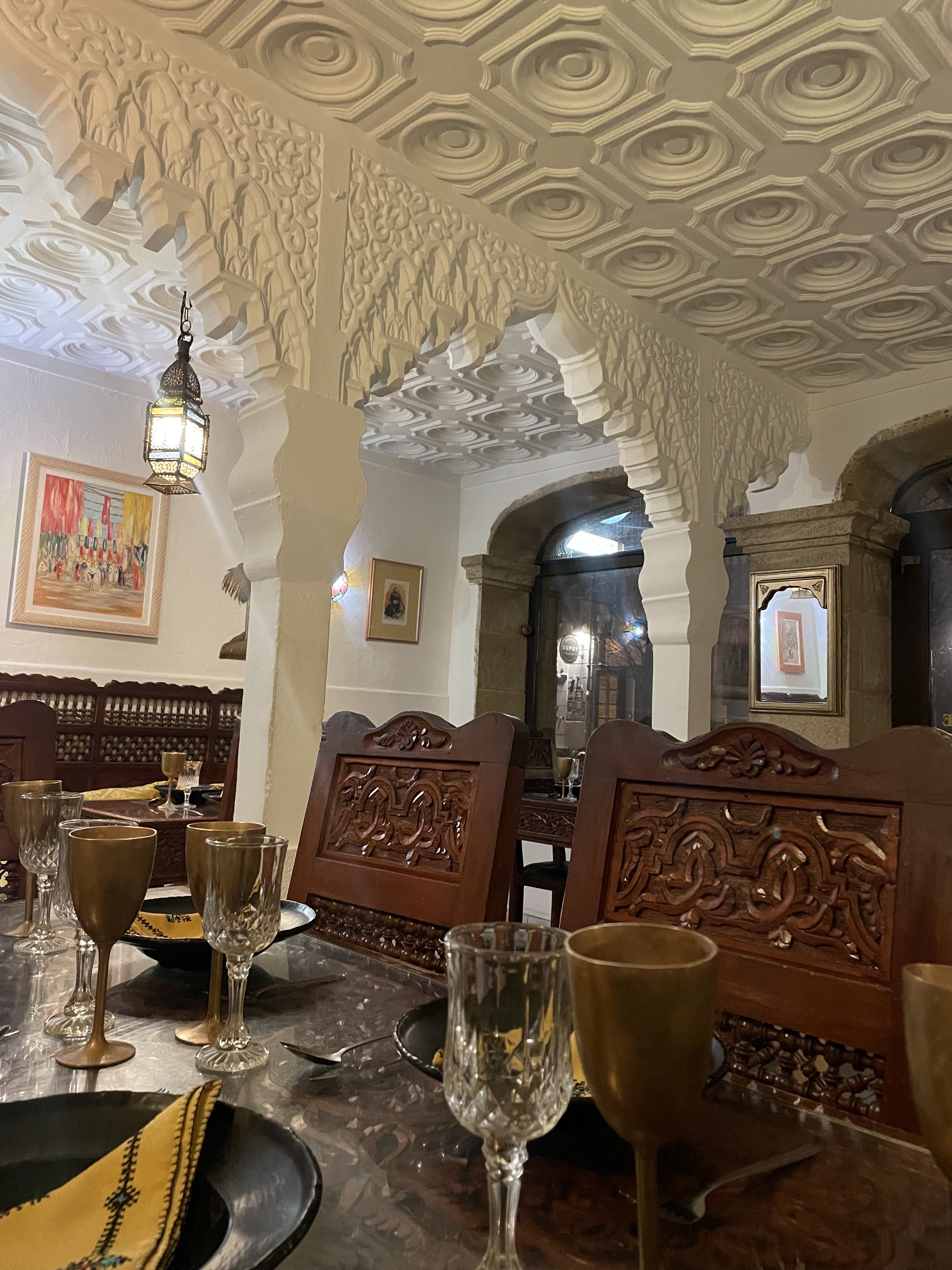Copieux mais ambiance cantine, pas tamisé. Tables collées pratiquement les unes aux autres. Couscous à volonté mais non parfumé. Tajine plus goûteuse. Pas de menus. Cher, si on compare qualité/prix, mini 40 euros par personne pour repas complet avec une boisson.