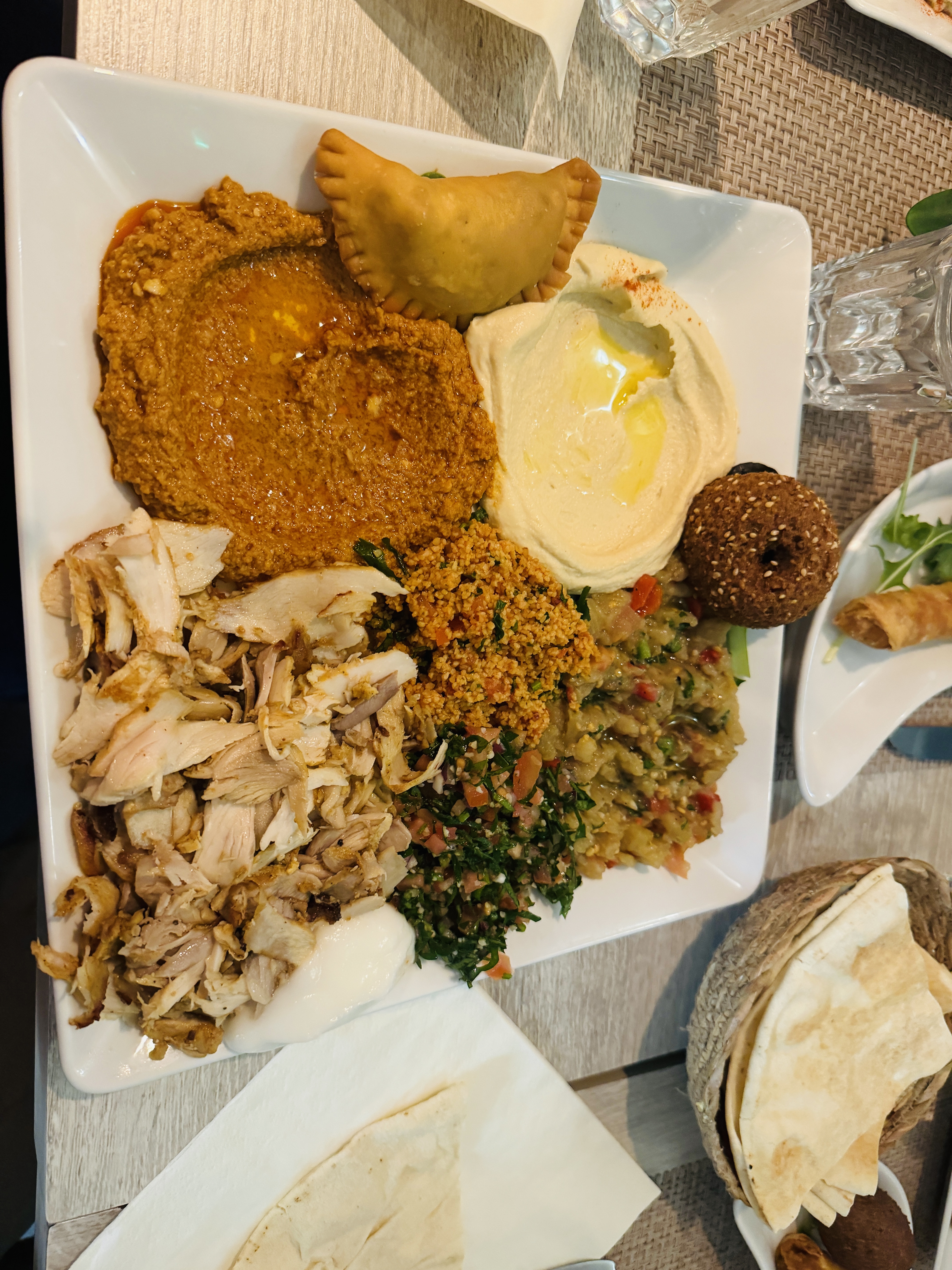 Spécialités libanaises, j'ai dégusté une assiette au poulet en mode shawarma, bien assaisonné, le houmous excellent, le riz très bien cuit, grosse déception pour le pain pita sûrement pas fait maison, dommage sinon c'était le sans faute. Venez le tester par vous-même.
