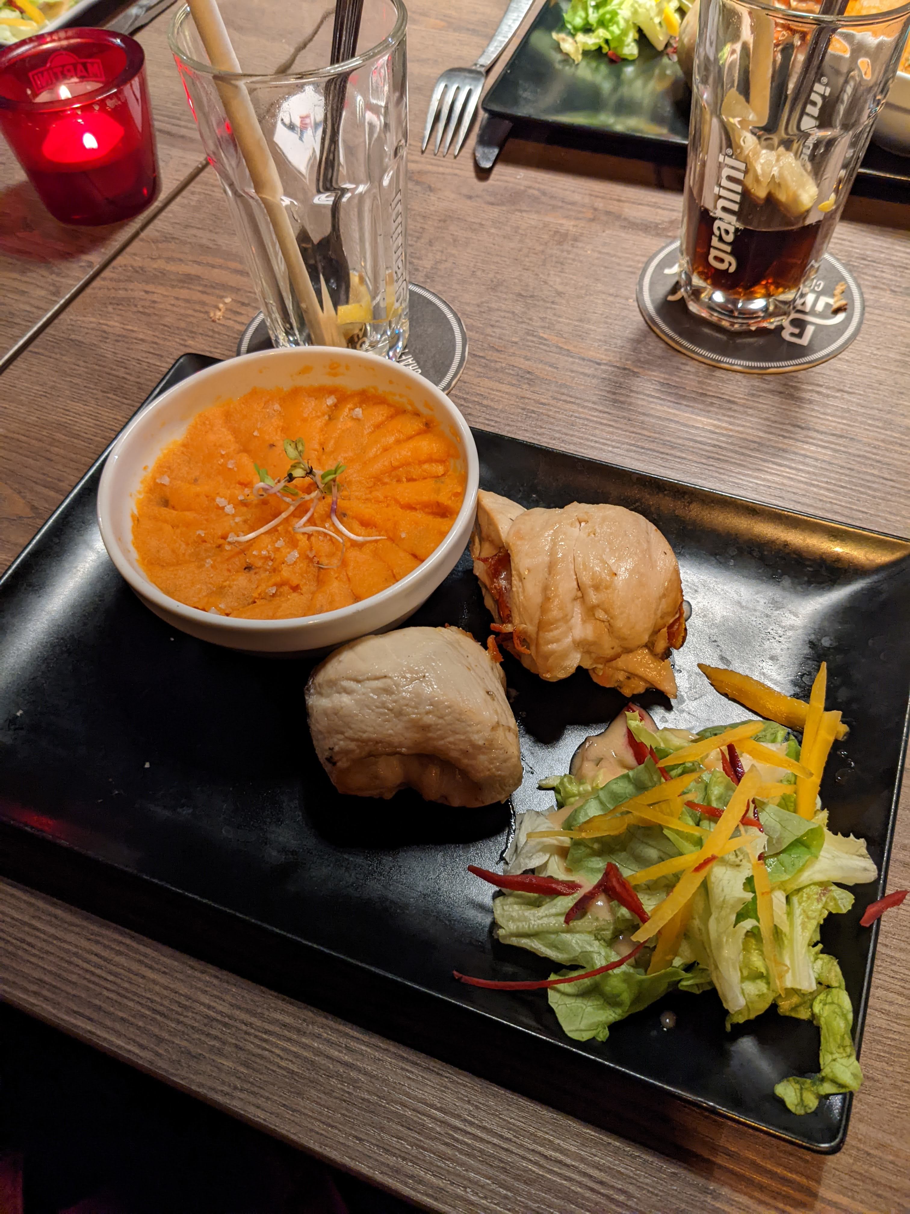 La soupe verte était VRAIMENT bonne. J'ai aussi pris le poulet pour le plat, ce qui était bien aussi. Mais la portion était trop grosse pour une personne et je n’ai pas pu la finir.