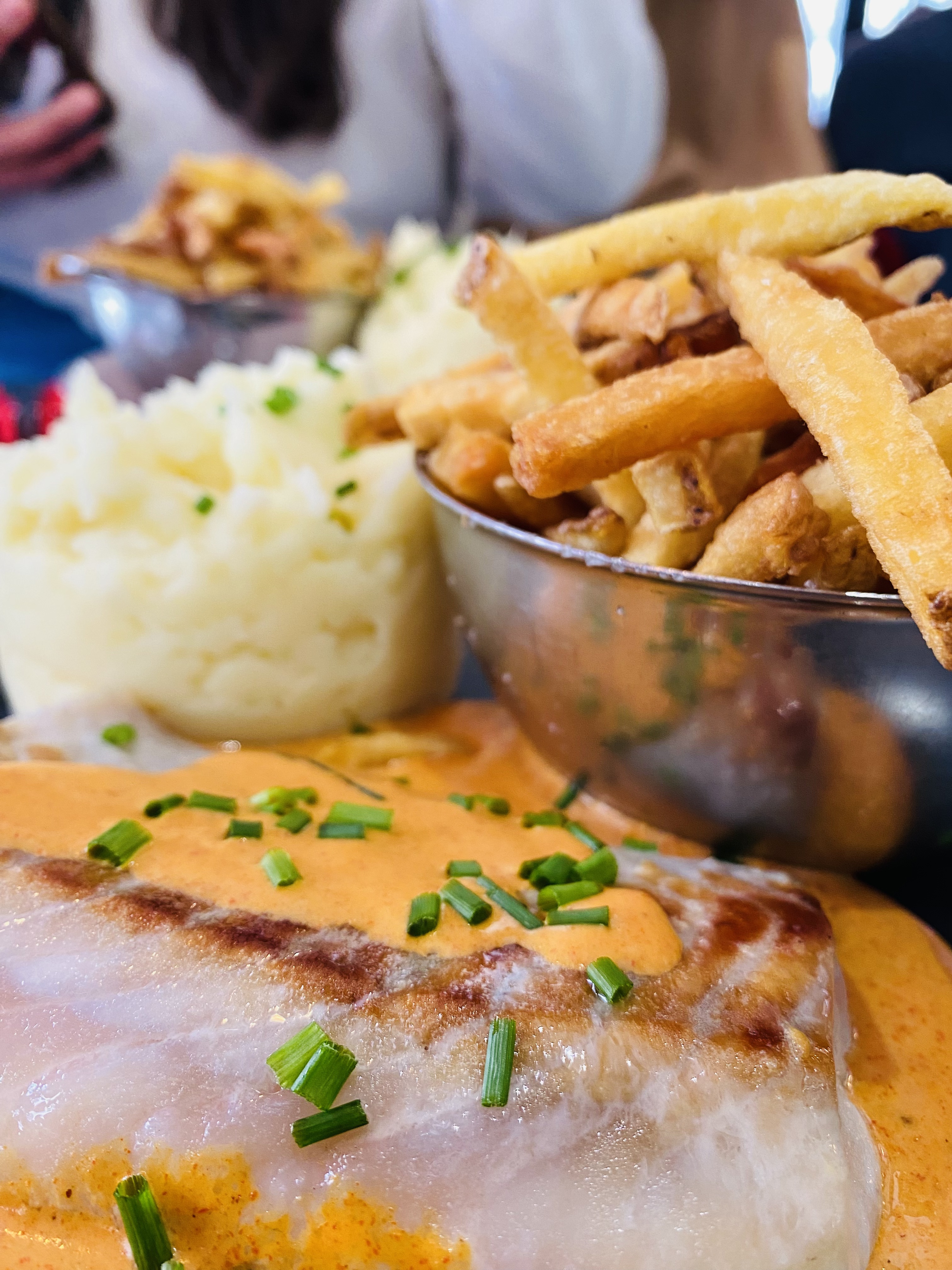 C'est vraiment un bon restaurant avec une nourriture et un personnel incroyables. La dame est très généreuse et compréhensive. J'ai mangé du saumon avec de la purée de pommes de terre et des frites. C'était délicieux et le personnel était accueillant aussi