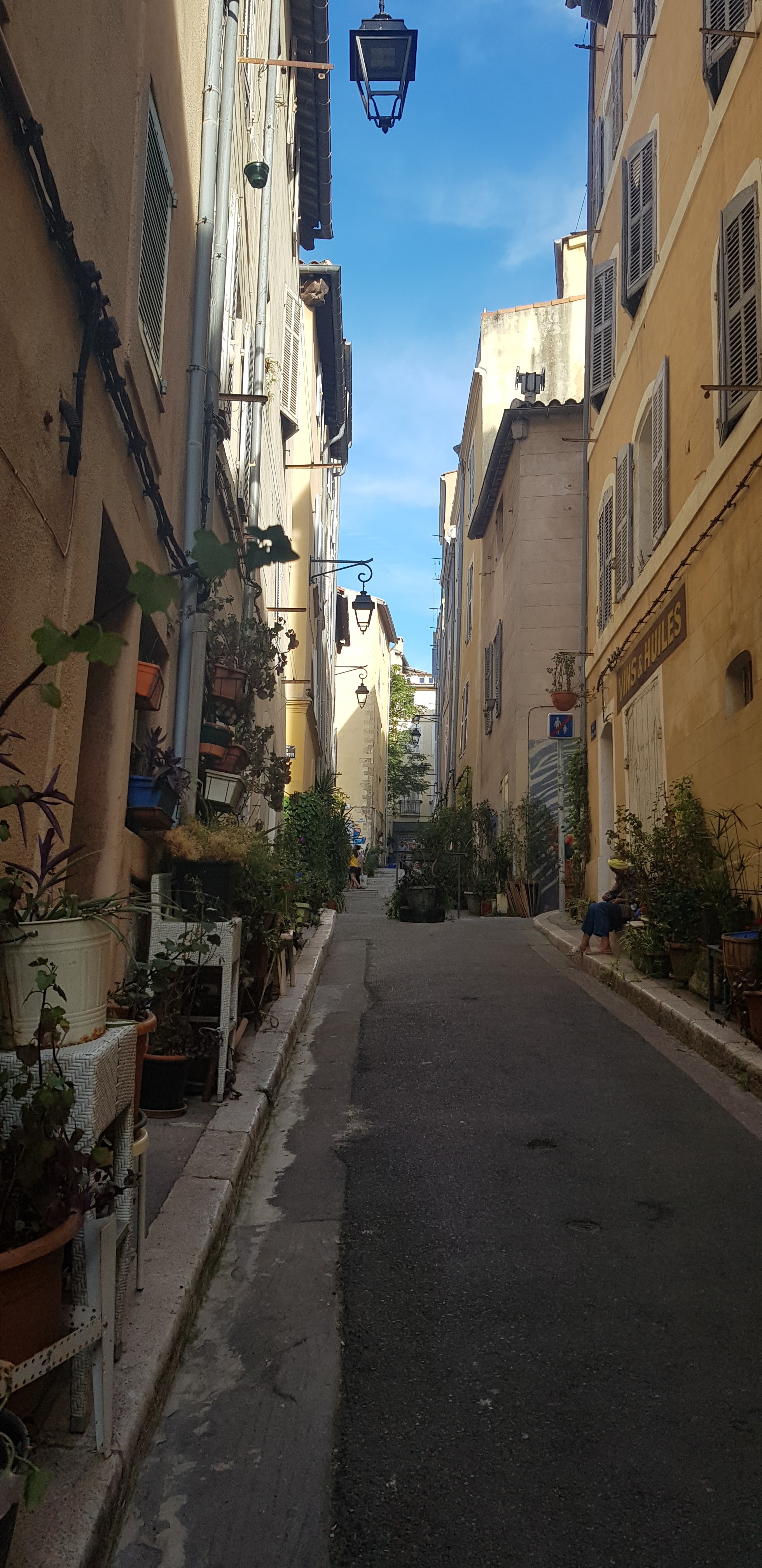 Rues pittoresques à visiter absolument. Le vieux Marseille vous replonge dans un autre siècle où la voiture était absente et la convivialité bien réelle... A méditer dans notre monde hyper connecté mais où paradoxalement l'individu est isolé..