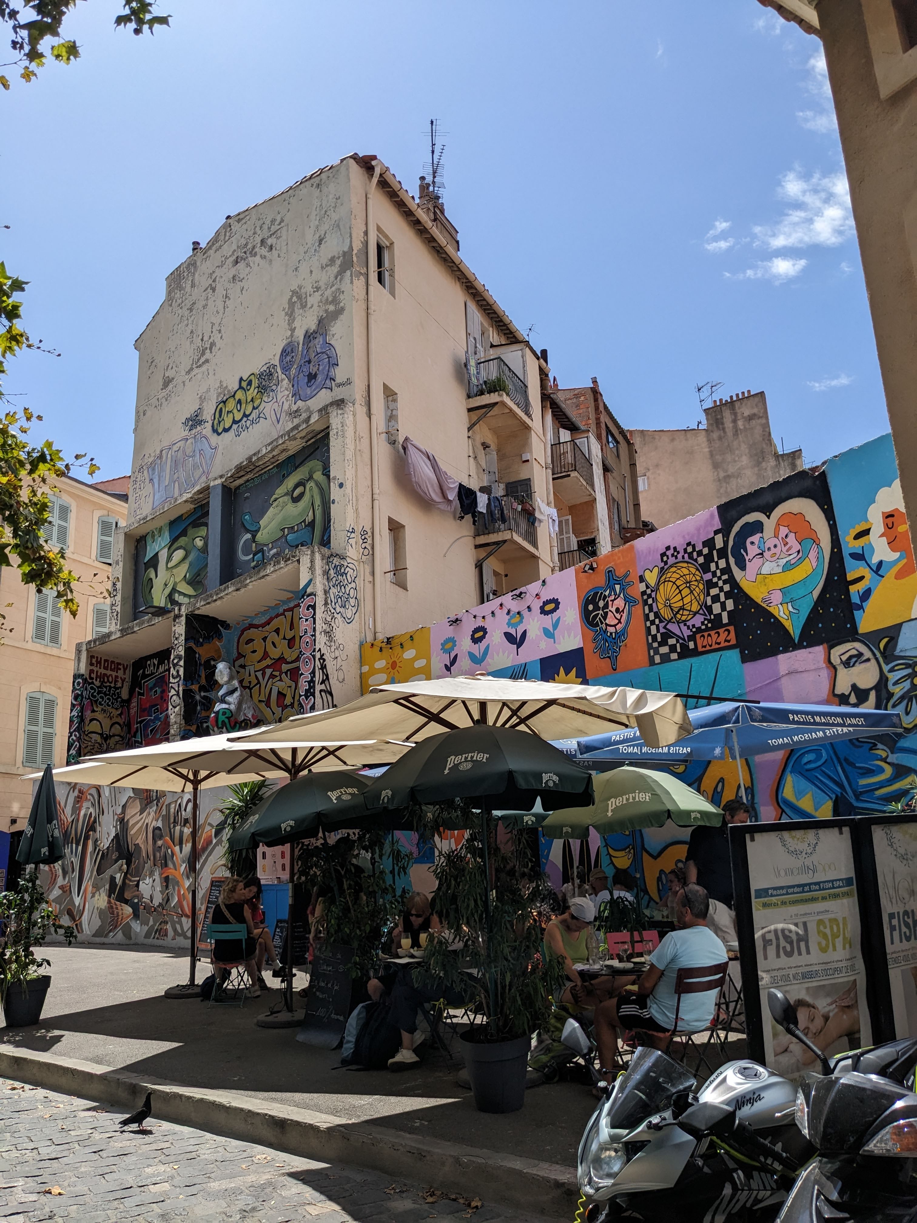 Un petit coin de Marseille sympathique.... Bcp de street-art mais aussi de petits commerces restaurants avec de belles terrasses au dessus du vieux port a qq pas