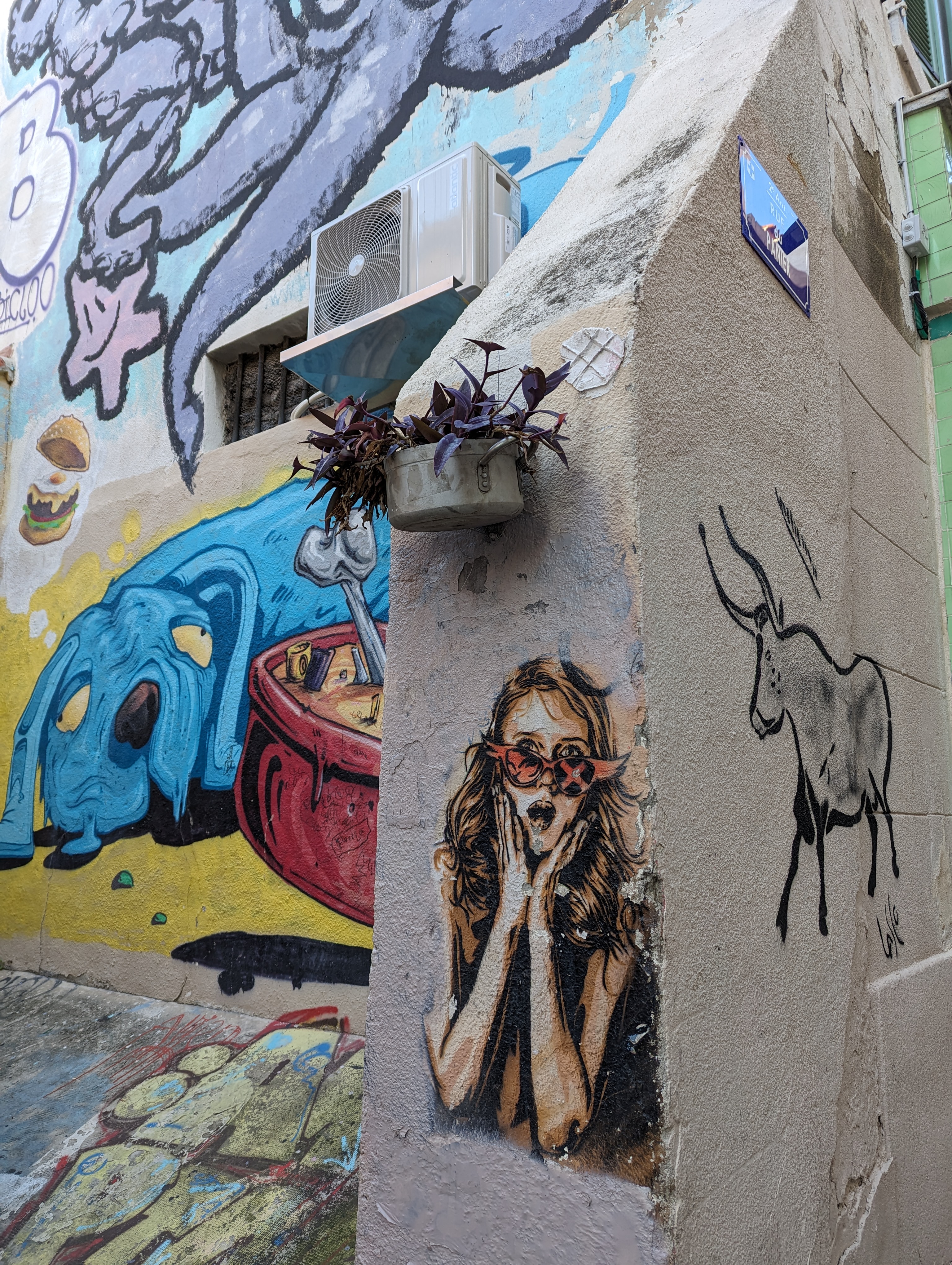 Quartier coloré par ces tags dans les ruelles Petit coup de gueule pour le bazar du panier Qui est un endroit assez visité et pris en photos par les touristes, La personne responsable a cet endroit était très antipathique, nous a reproché de prendre son lieu en photo sans son avis Alors que des milliers de personnes le font tout les jours Ma seule déception a cet endroit… Sinon le reste visite agréable