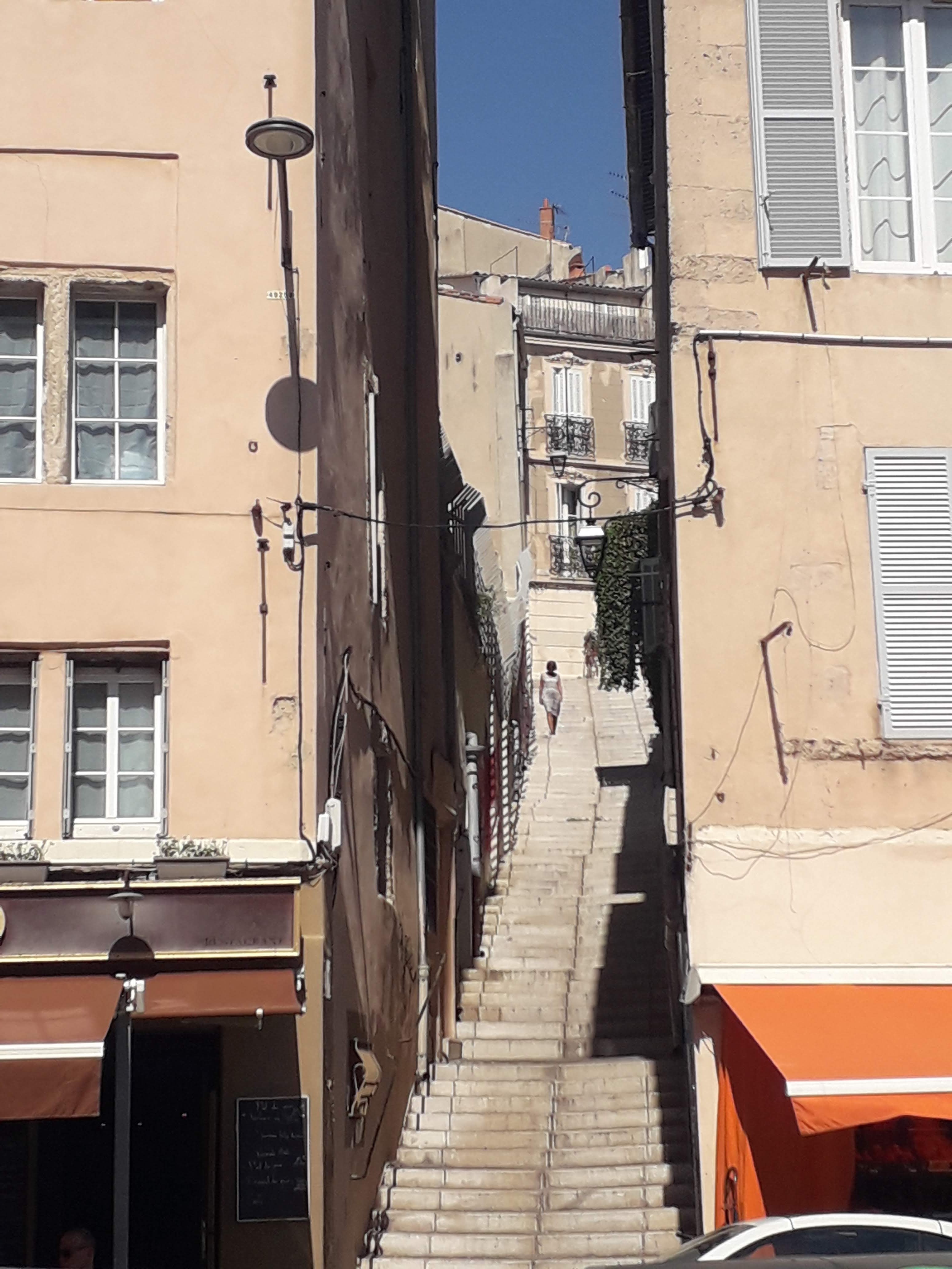 Ancien quartier de Marseille ou l'on peut remarquer certains détails marquant le passage de différentes civilisations comme l'usure en parabole des escaliers sur les côtés des rues surement empruntées par les brouettes aux roues en bois certies d'une ceinture de fer..