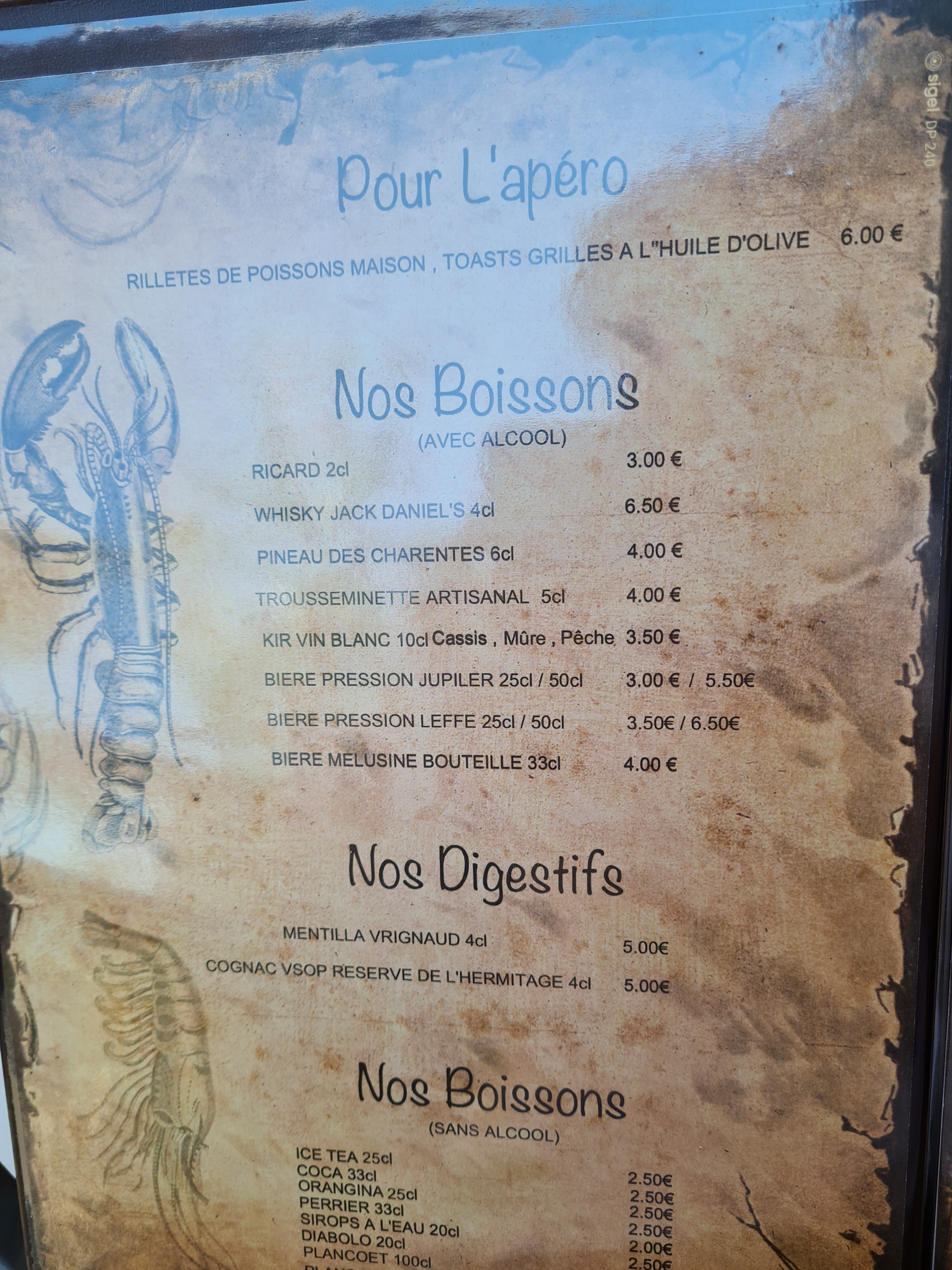 Une petite table sans prétention On y déjeune ou on y dîne sans émotion dans l'assiette Les amateurs de fruits de mer y trouveront leur compte Prix très abordables