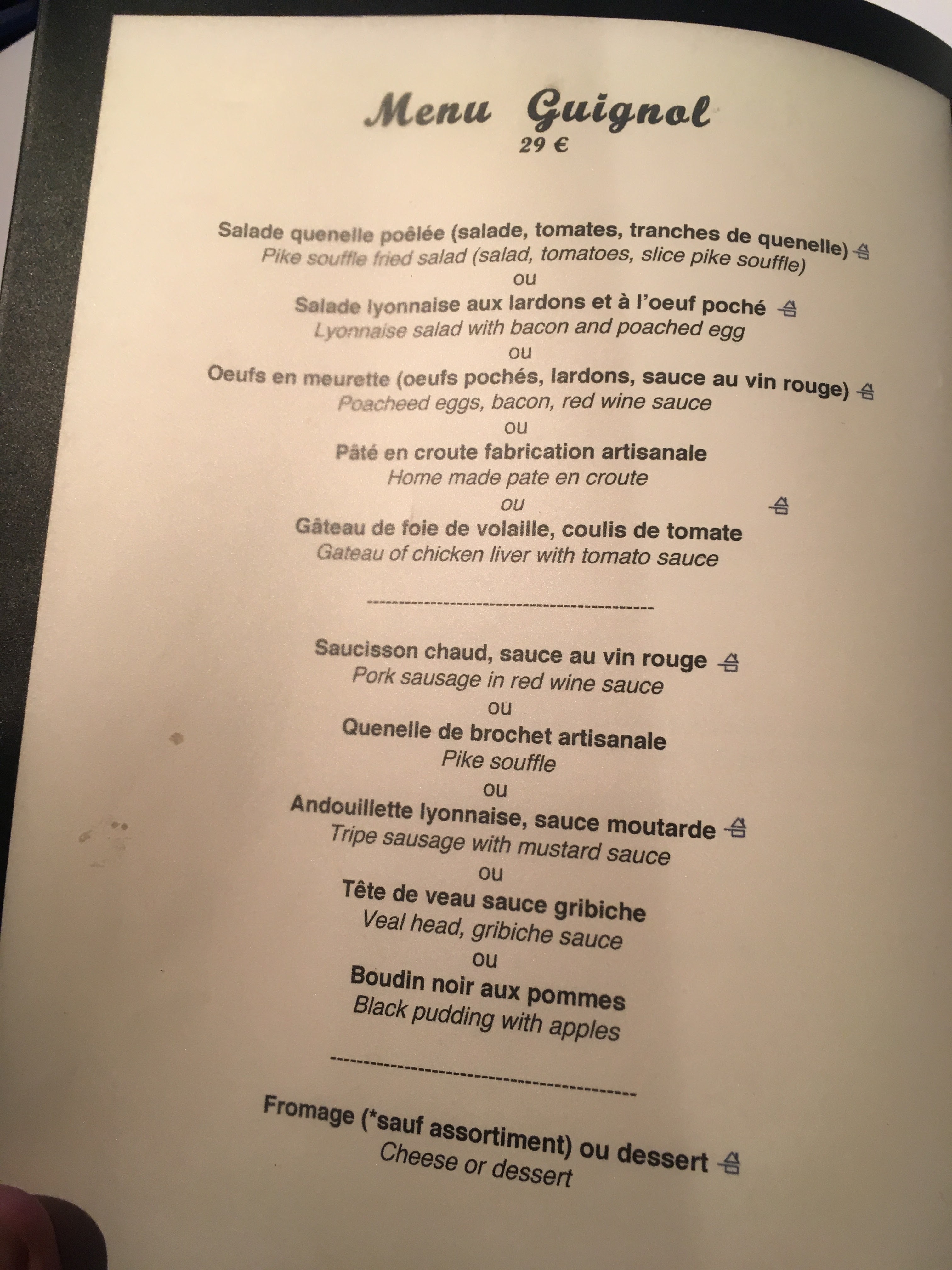 Un bouchon lyonnais typique, avec des oeufs meurette et quenelle de brochet absolument délicieux, et copieux, pas trop d'attente, ambiance sympa.