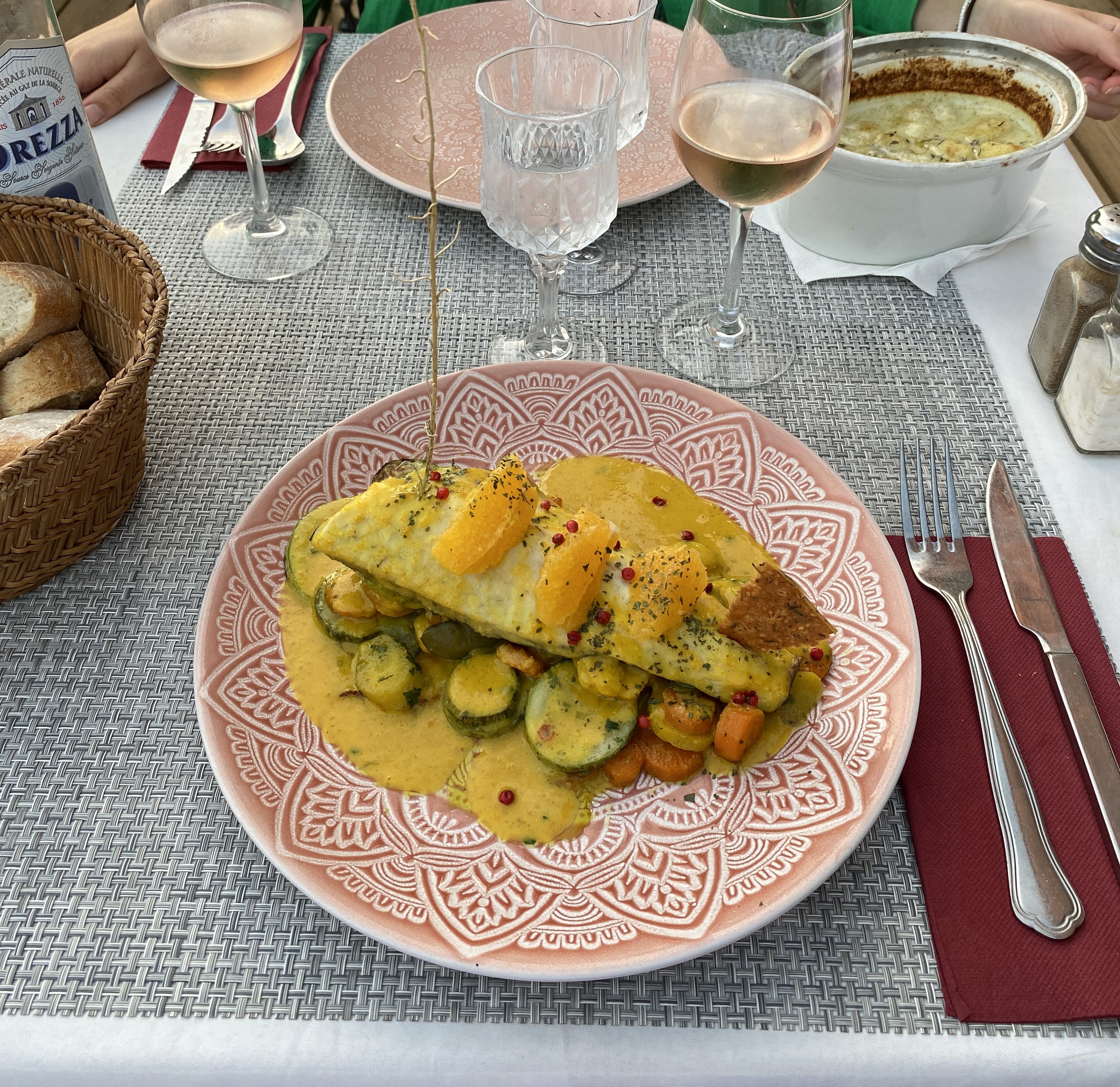 Nous avons mangé au restaurant ! La vue est jolie ! J’ai mangé des ravioles écrevisses et asperges, un délice pour les yeux et le goût ! Incroyable combinaison ! Le service impeccable, les serveurs au top ! Je recommande les yeux fermés ! Très bon rapport qualité prix ! Rien à dire !
