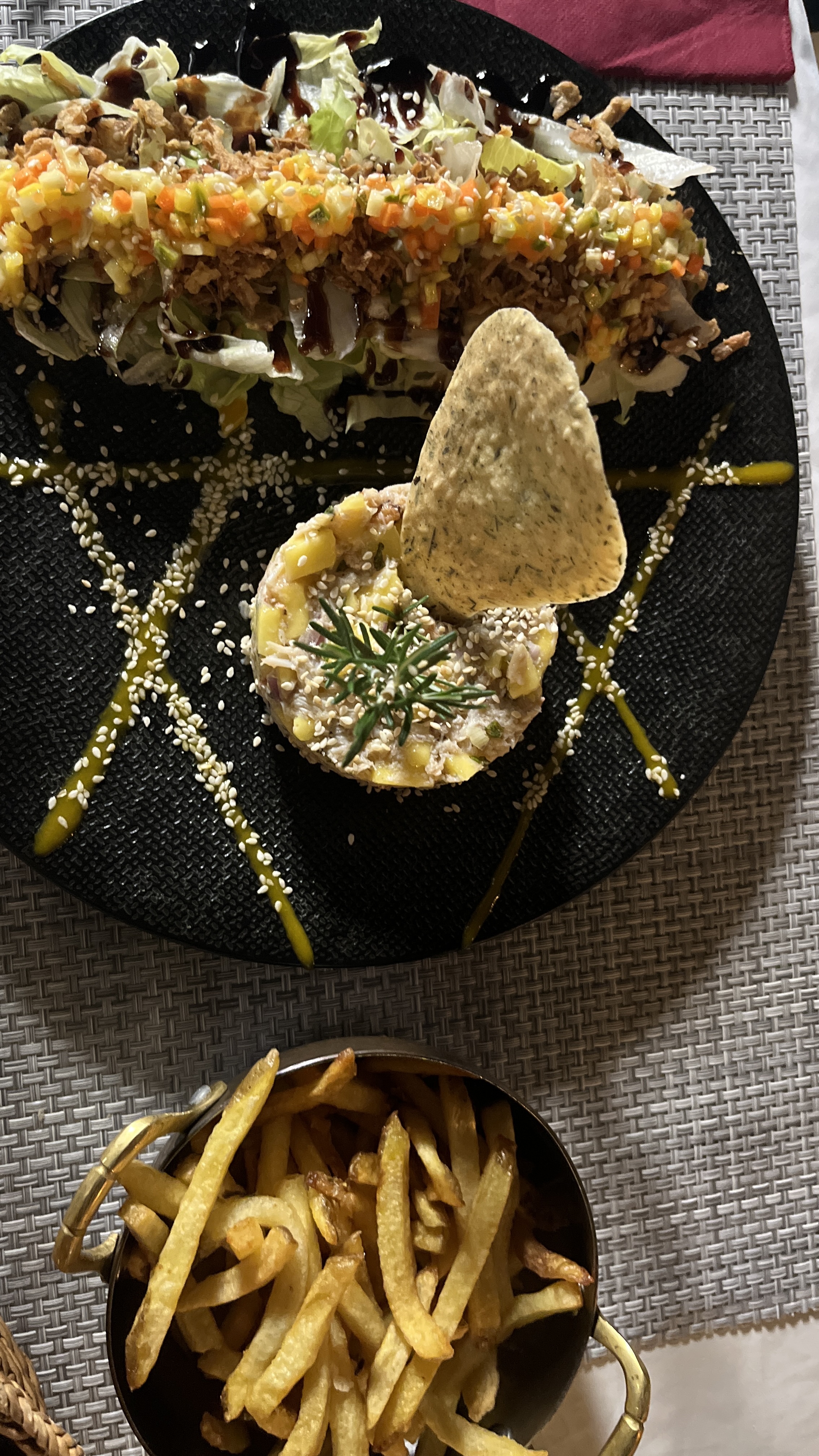 Un service et une soirée très agréable, grâce aux assiettes dont la qualité est excellente, ainsi qu'aux serveurs dont le sourire se lit même derrière leurs masques, et qui sont pleins de bons conseils que ce soit pour le repas ou pour notre séjour sur l'île ! Rien à dire, on ne peut que conseiller cet établissement !