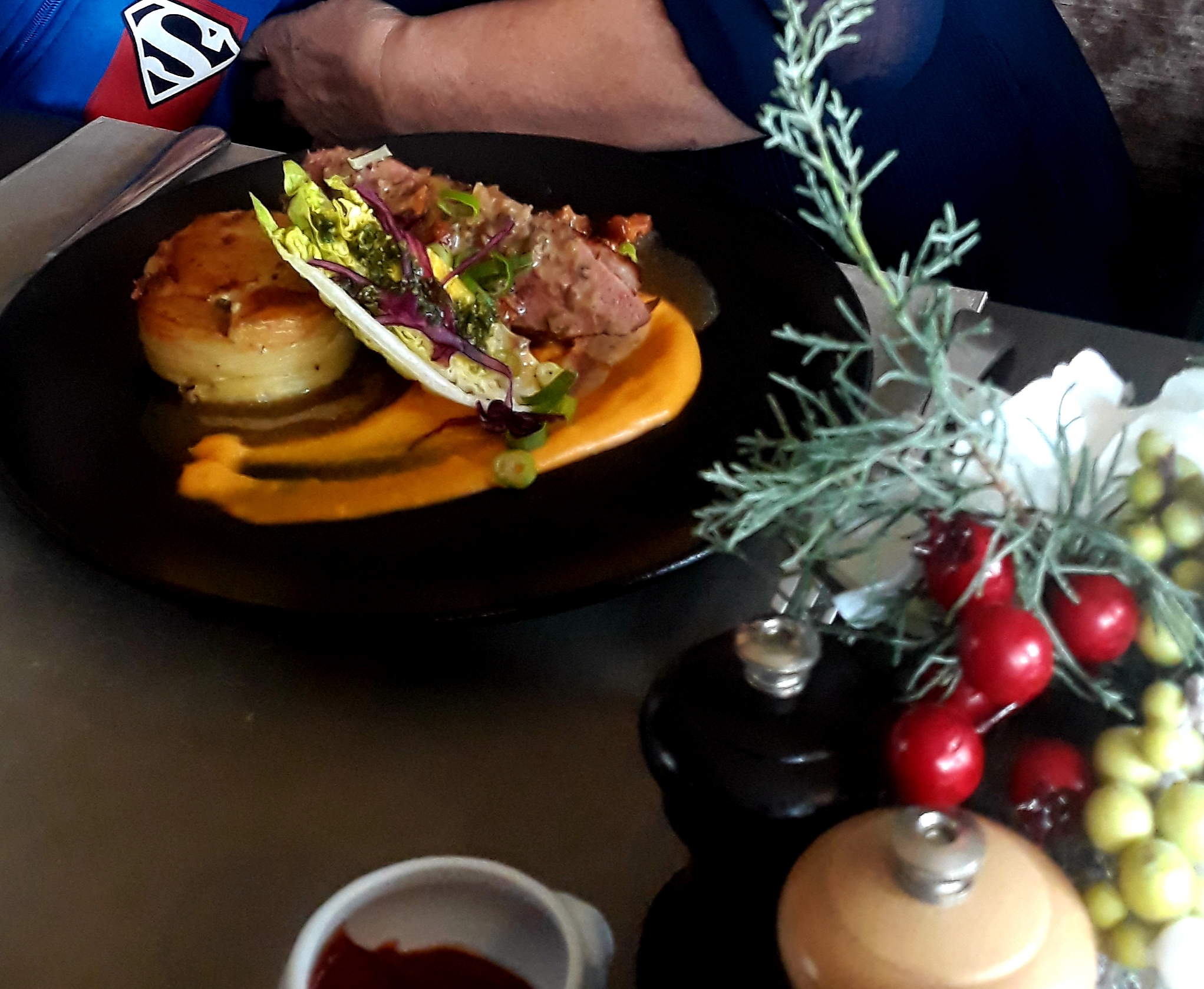 Plats bien cuisinés et gouteux servis dans jolie vaisselle . Service efficace serveur moyen.