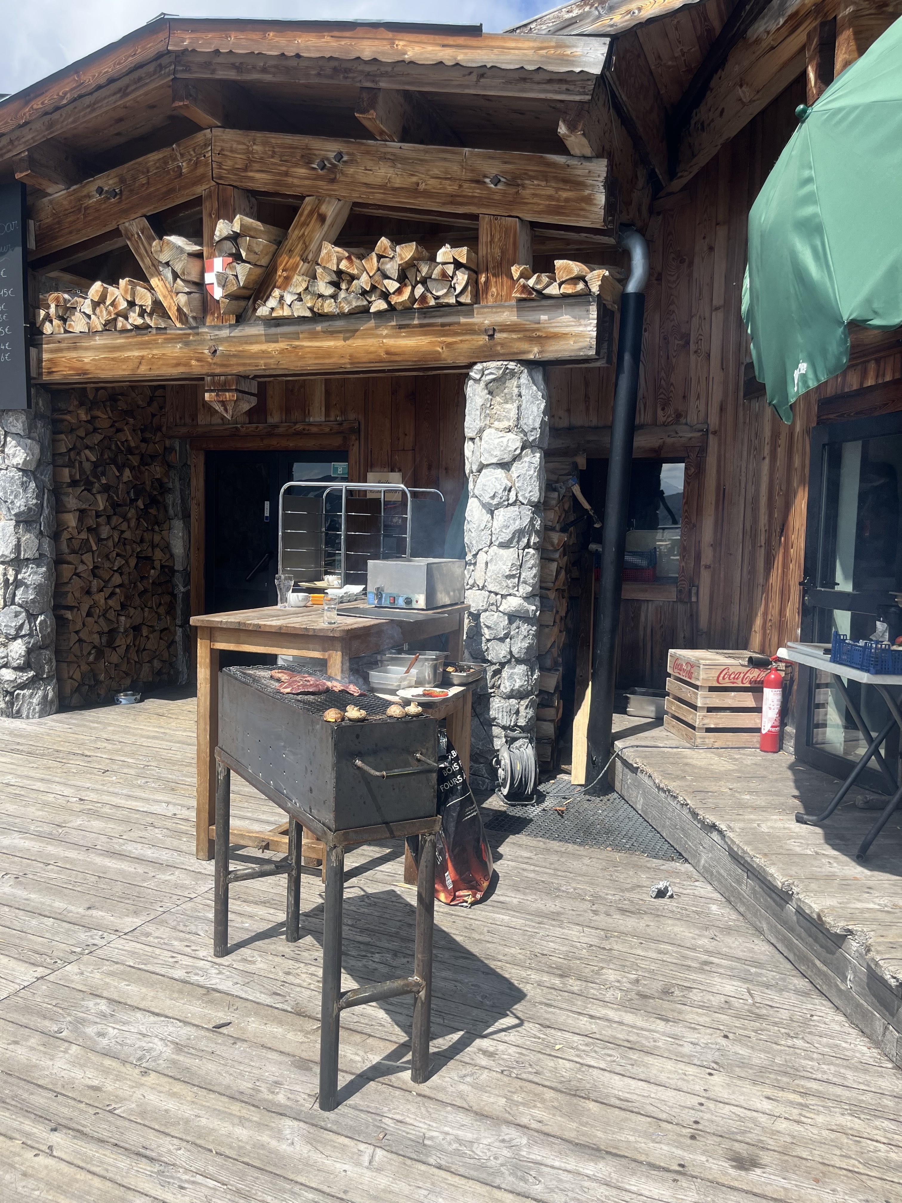 Sur le bar snack d été: Eh ben: nous qui pensions arriver dans un mange-touriste d altitude pour caler les enfants avec 3 frites… pas du tout ! Surprise, gé-nial!!! Spot incroyable, En plein été, Un barbecue feu de bois avec des legumes grillés a tomber, hampe parfaitement cuite, frites maison, plateau fromage charcute beau ET bon, et ils sont sympas. Et tres honnete en terme de prix. Félicitations sincères