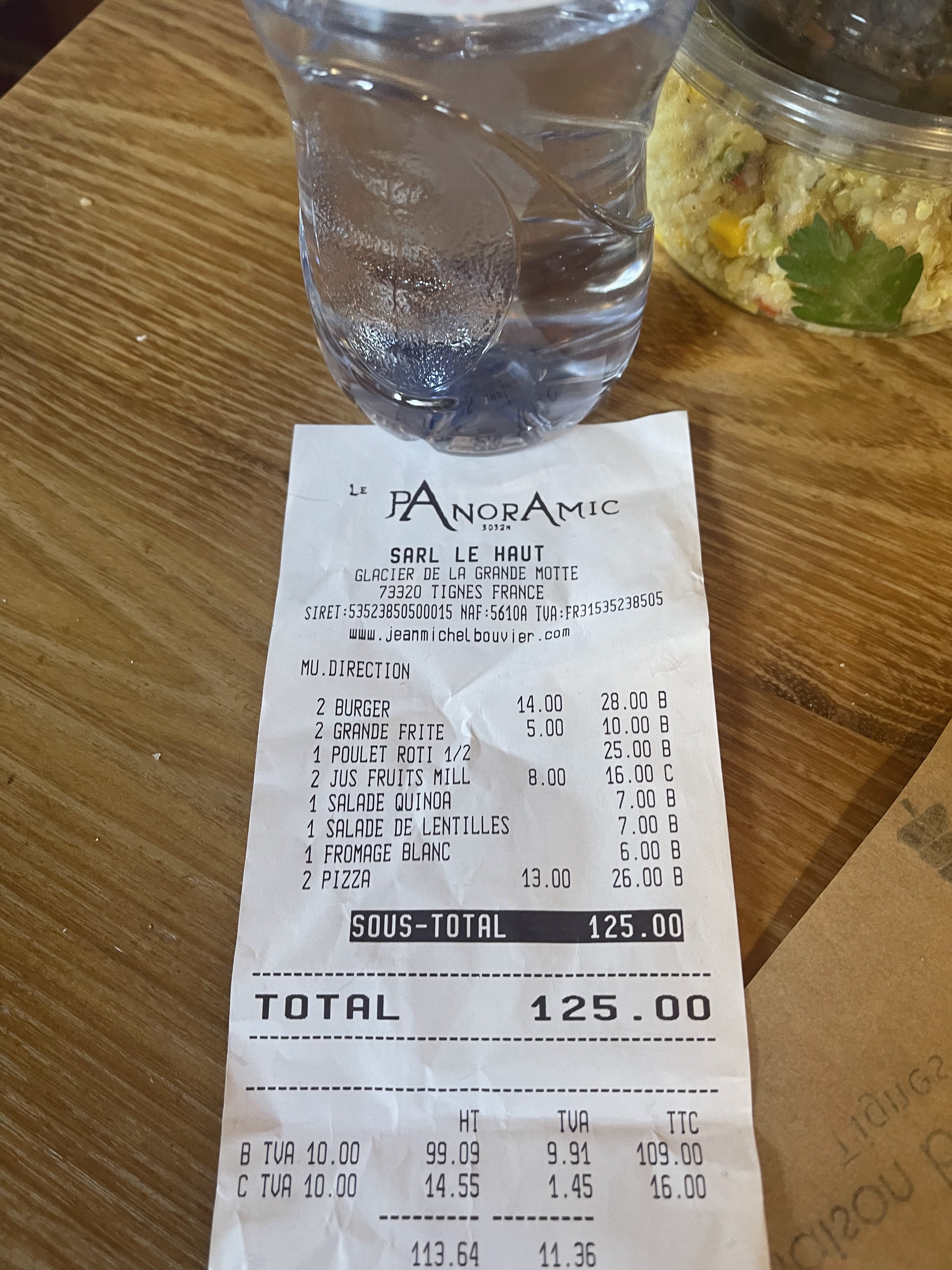 Pas trop chère pour son altitude et sa vus, reste bon mais je conseille de manger à l'intérieur selon la météo sinon risque de gelé de la nourriture