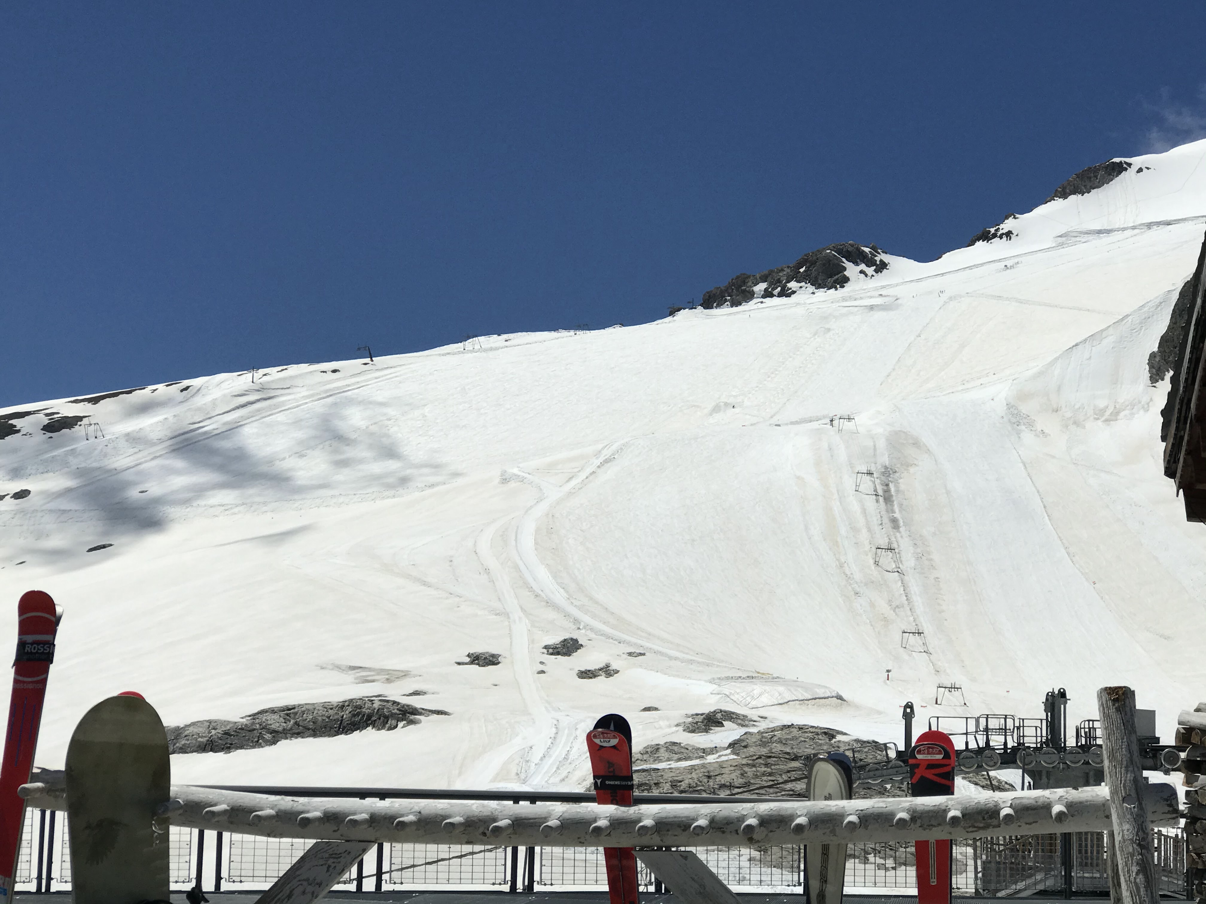 Le panorama est superbe. L'endroit propice à la méditation. Mais où est la neige d'antan et les skieurs d'été? Nostalgie quand tu nous tiens