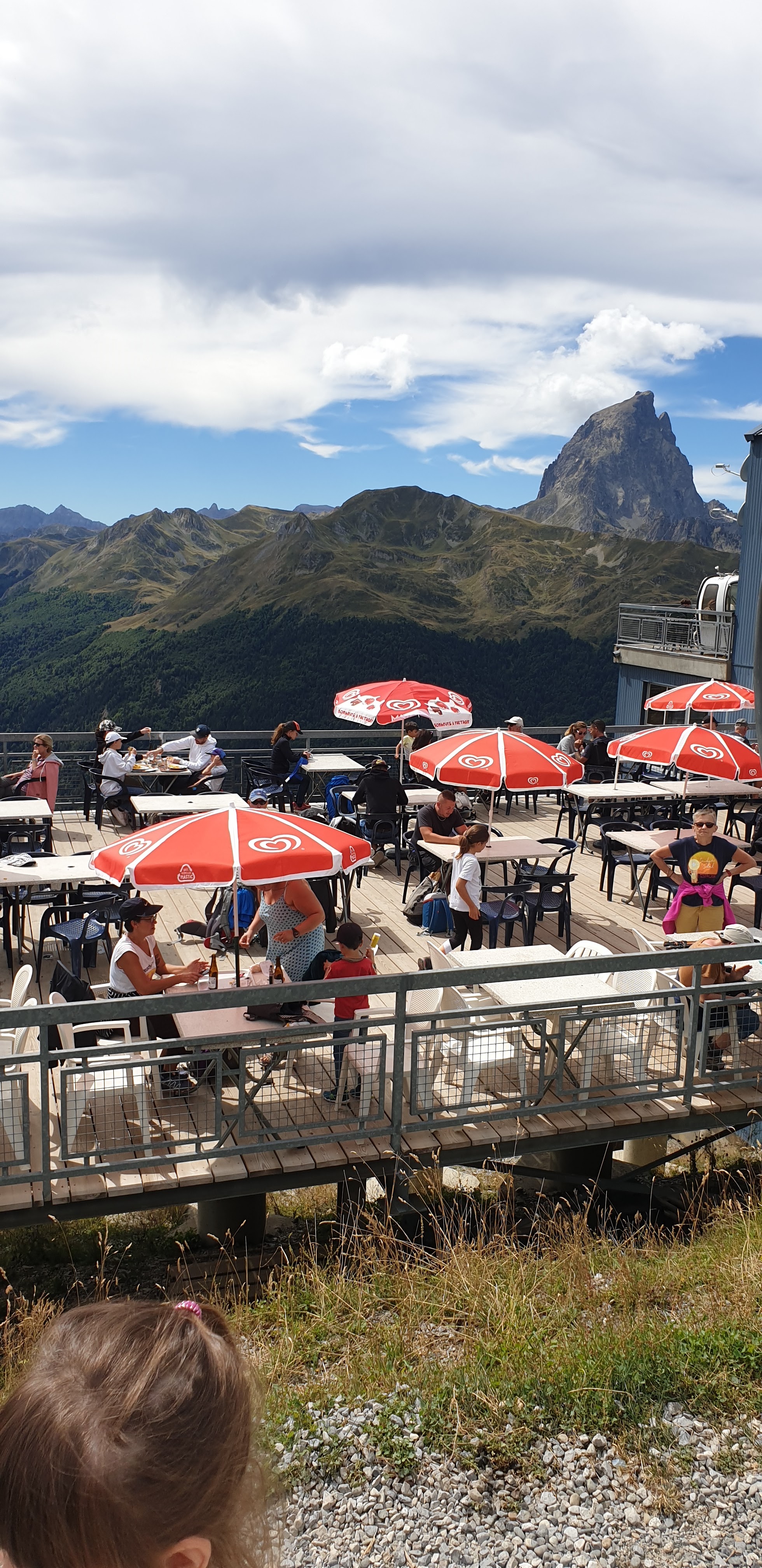 Arrivé par la télécabine endroit presque obligé de passage. On se retrouve vite perdu par toutes les entrées. On ne sait pas forcément où commander. Les gens dépassent les autres par manque d indication clairs. Sinon vu très belle et permet d'attendre le petit train d'artouste
