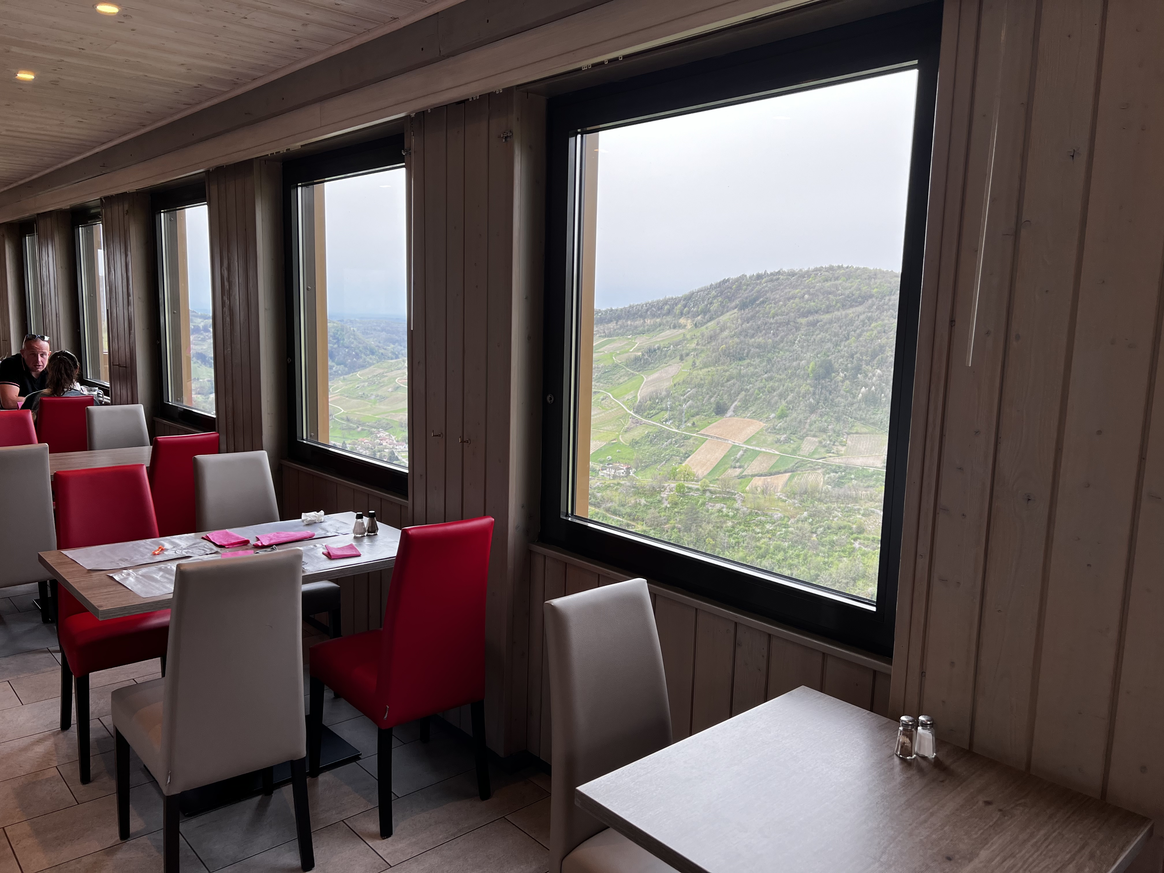 J'ai ou mangé enfin dans ce restaurant, ou la vue ma fait rêvé plus d'une fois, lors de mes déplacements dans ce secteur. Après une matinée chargée, petit repas était très bien. Entrée Terrine Maison au Top. Plat un Mijoté de Joue de Boeuf 👌 Dessert Tarte au quetsche. Rapport qualité prix impeccable. Et là Vue au Top. Serveuses très Aimable. Tellement agréable moment que j'ai oublié de prendre des photos.