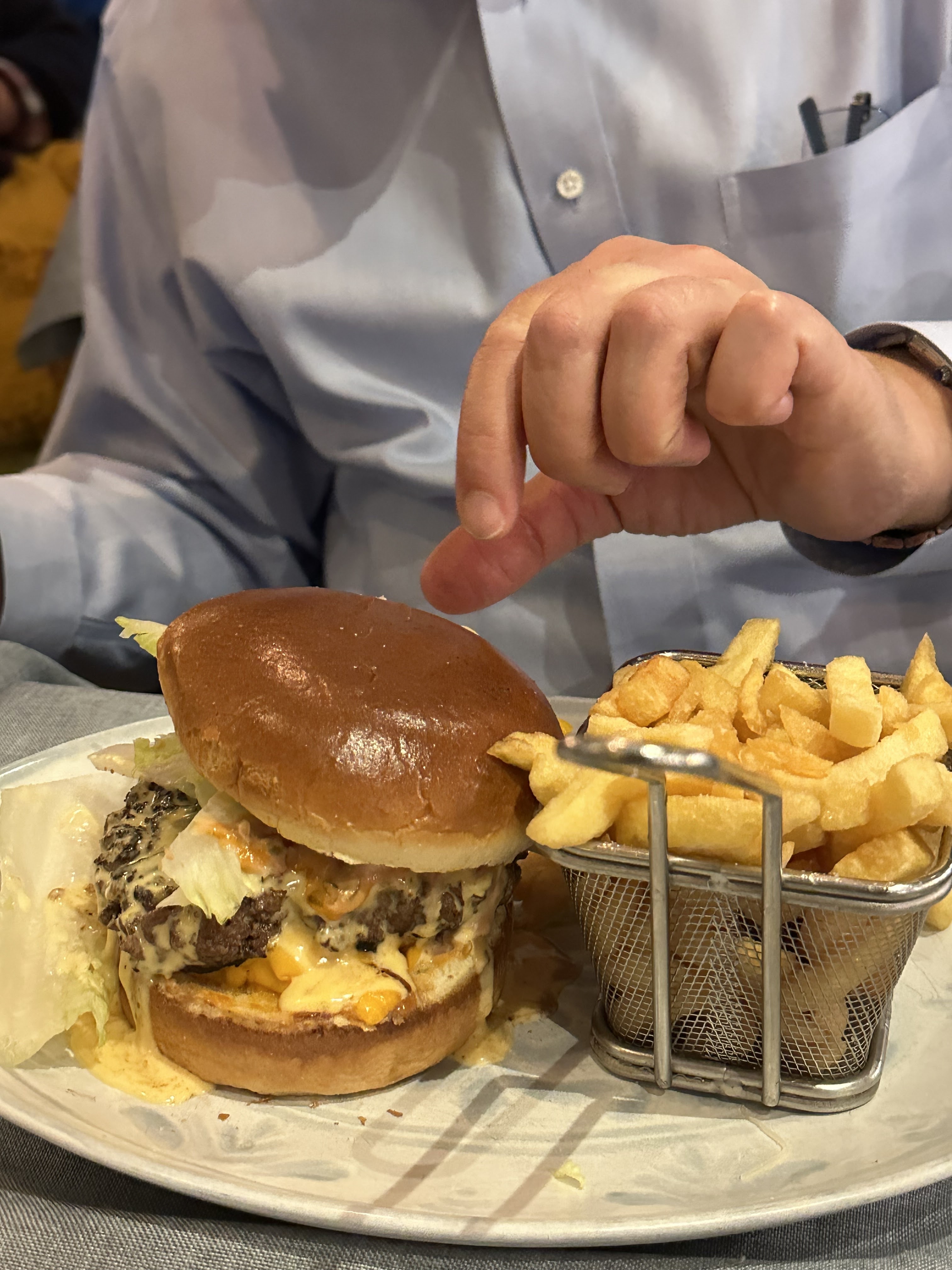Nous y avons déjeuné hier midi. Point positif : on a pu déjeuner à 16h00 un jour férié. Le service qui etait assuré pas deux femmes, n'etait pas terrible du tout. Bien que la salle était vide, le temps d'attente était assez long et manquait à notre sens de professionnalisme. Le chesseburger à 18,50 euros était bon mais cela restait un burger. Nous ne recommandons pas particulièrement cette adresse.