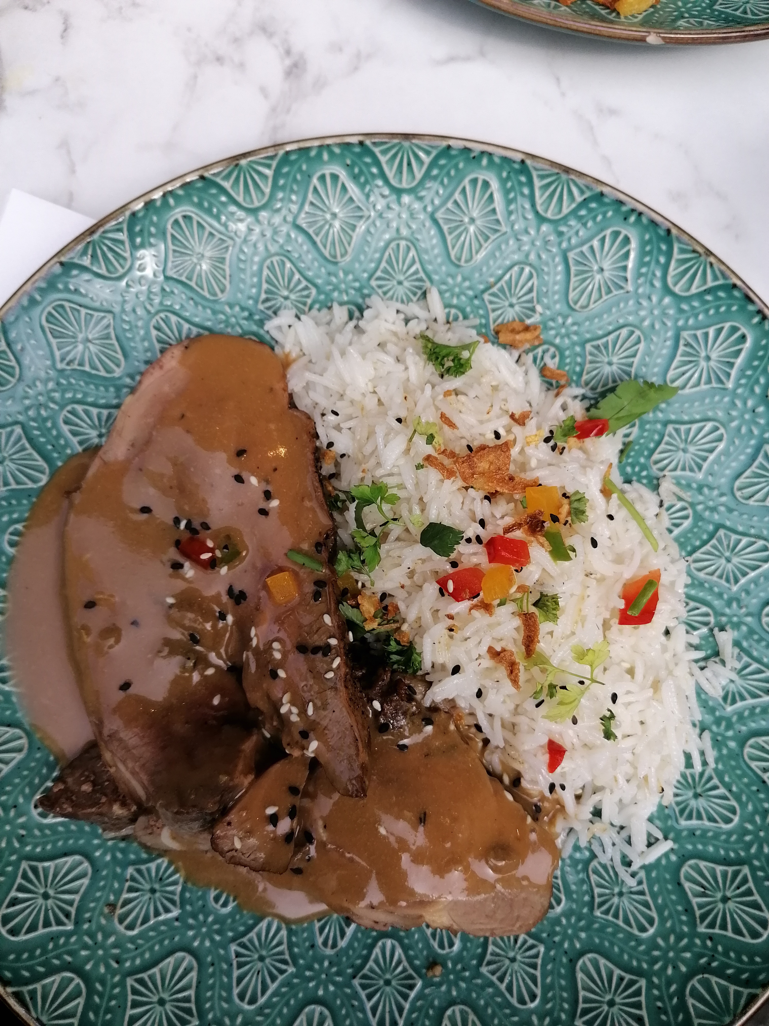Décor jolie mais nourriture peu suffisante et trop assaisonnée Service à revoir