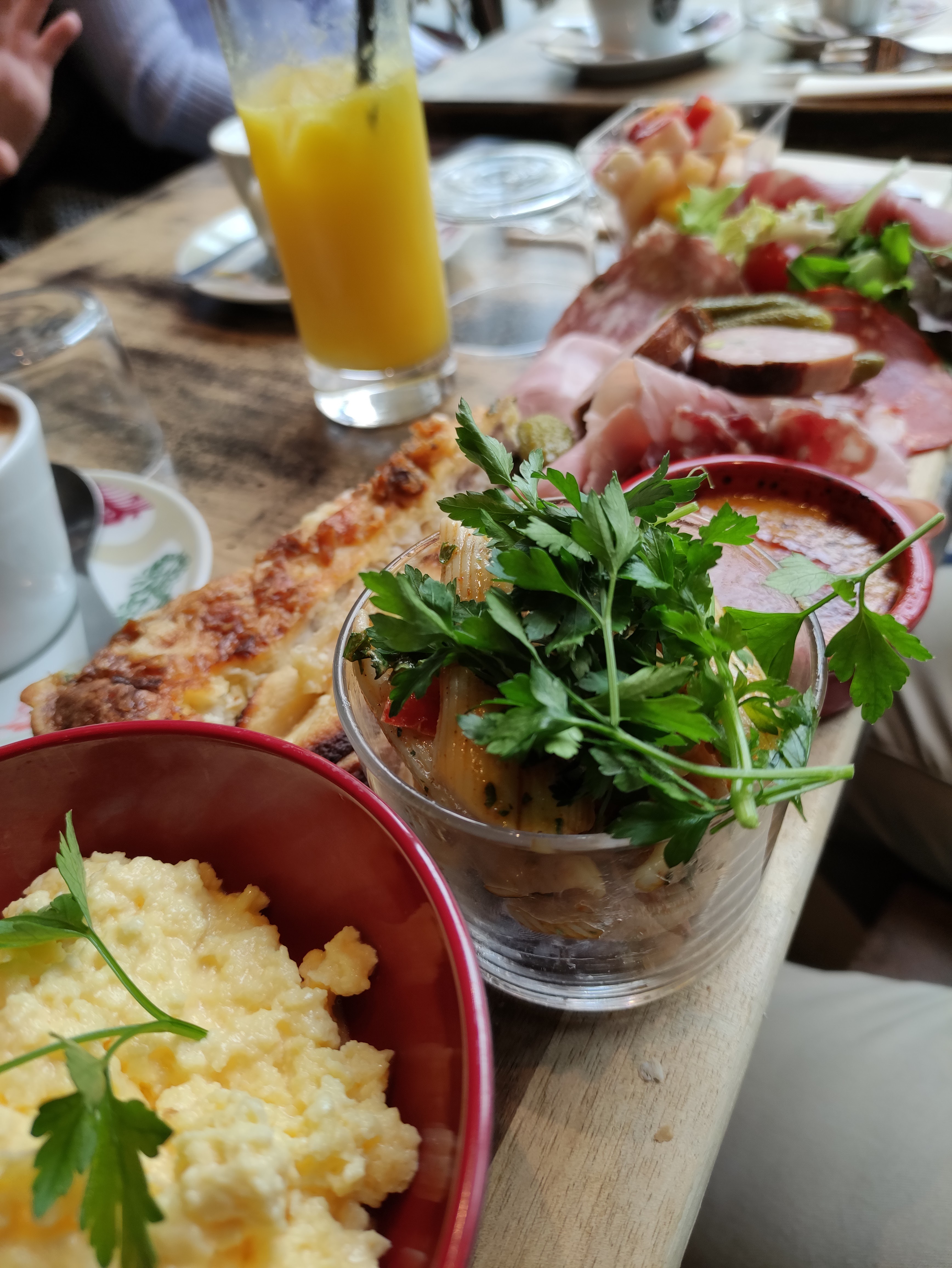 Super brunch, très copieux et varié : boisson chaude, jus de fruits, fromages, charcuterie, oeufs brouillés, viennoiserie, pâtisserie... Service rapide et aimable.