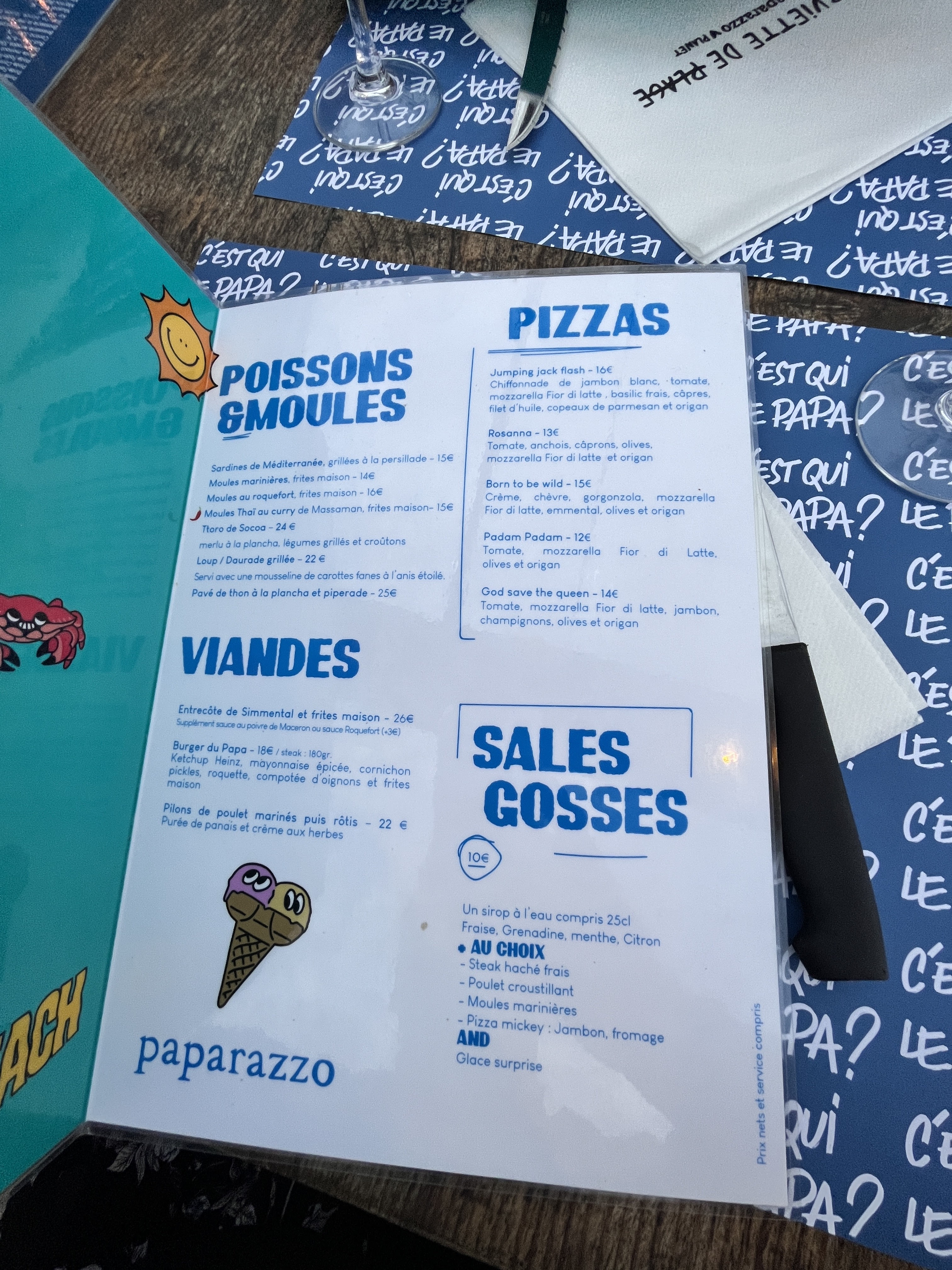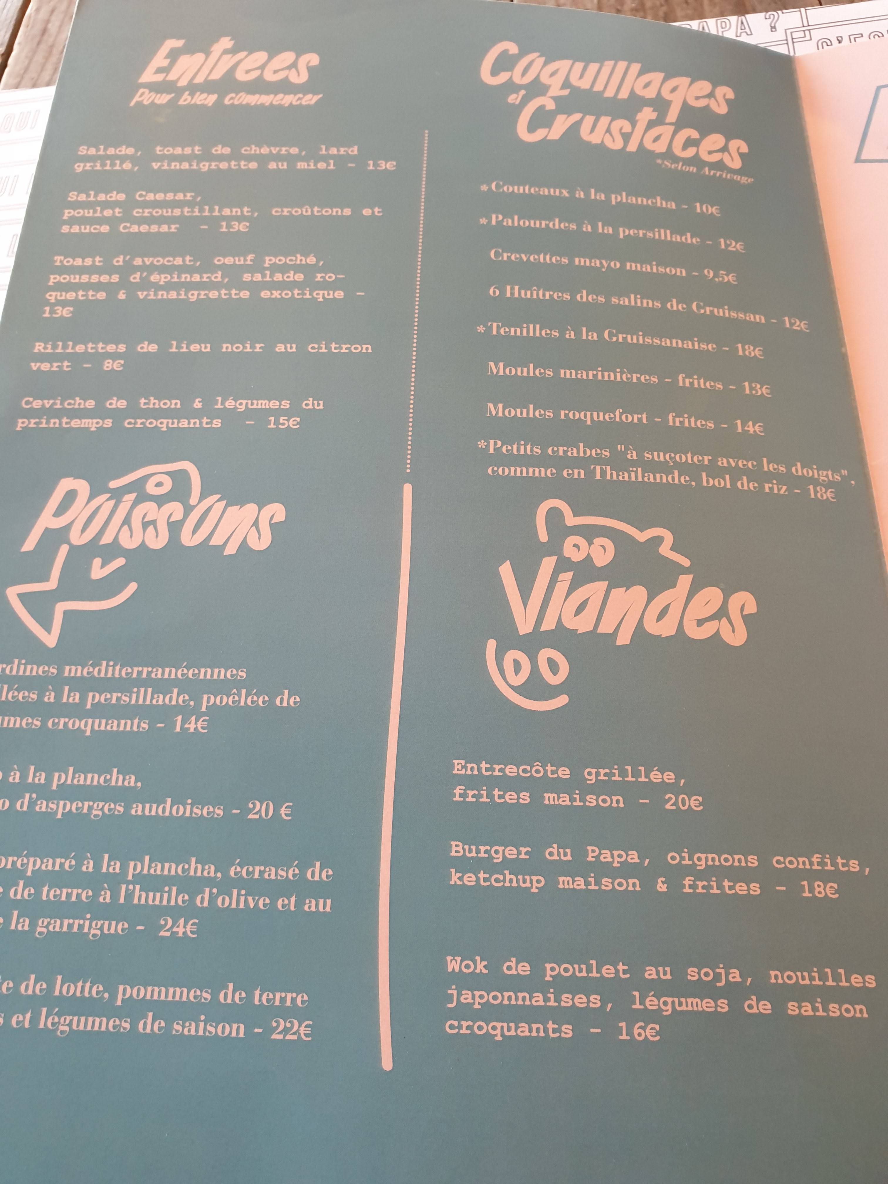 Mais qui est le papa ??? Voilà la question qui intrigue quand on arrive sur ce lieu magnifique par la proximité à la mer et son agencement soigné et tous ces messages posés ça et là ! Une vrai base pour passer un excellent moment ! Initialement on est venu pour les enfants et ils n'ont pas été déçus : menu enfant excellent, jeux gonflables, petits bonbons ... Quant à nous, un régal aussi ! Le service est rapide, et les prix corrects... Un excellent rapport qualité/prix/ qualité d'accueil :) Une très belle surprise, nous qui adorons Gruissan :) Merci à l'équipe