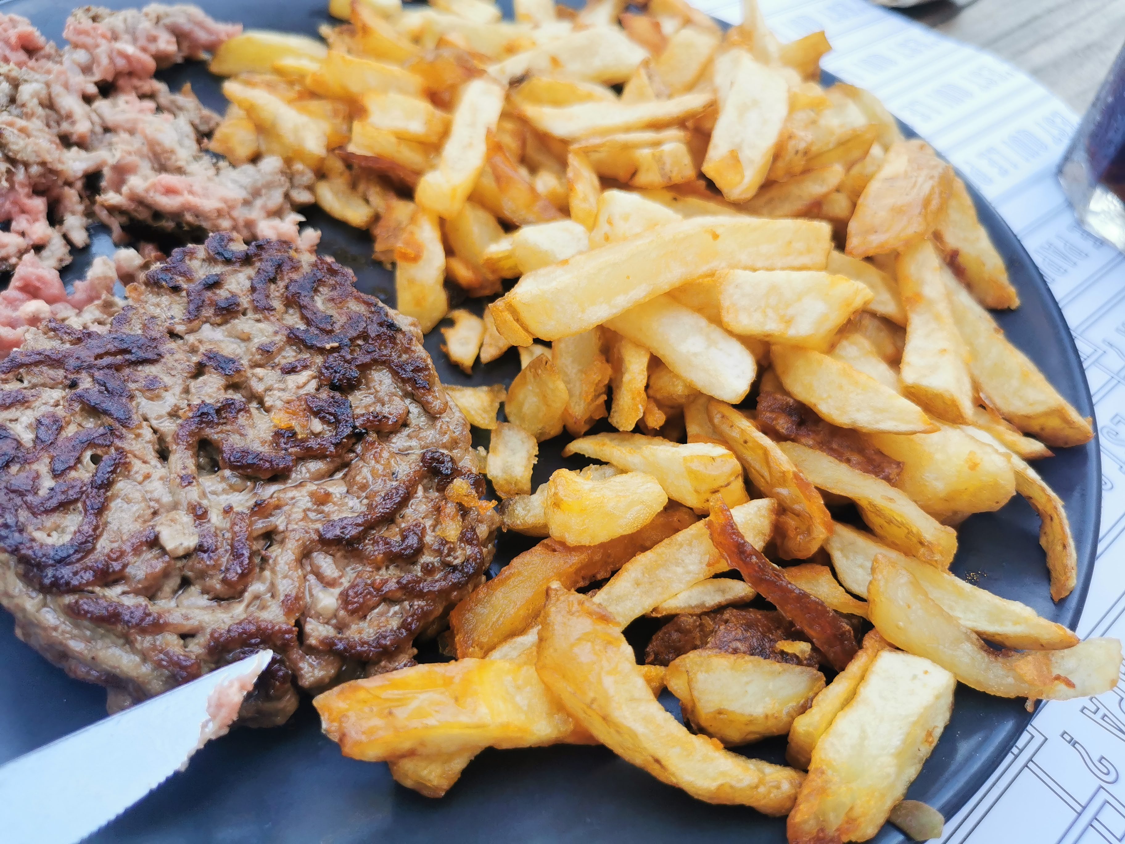 Viande très bonne. Moules frites vide sur deux bols j ai du manger 15 minuscules moules. Cher pour si peu.