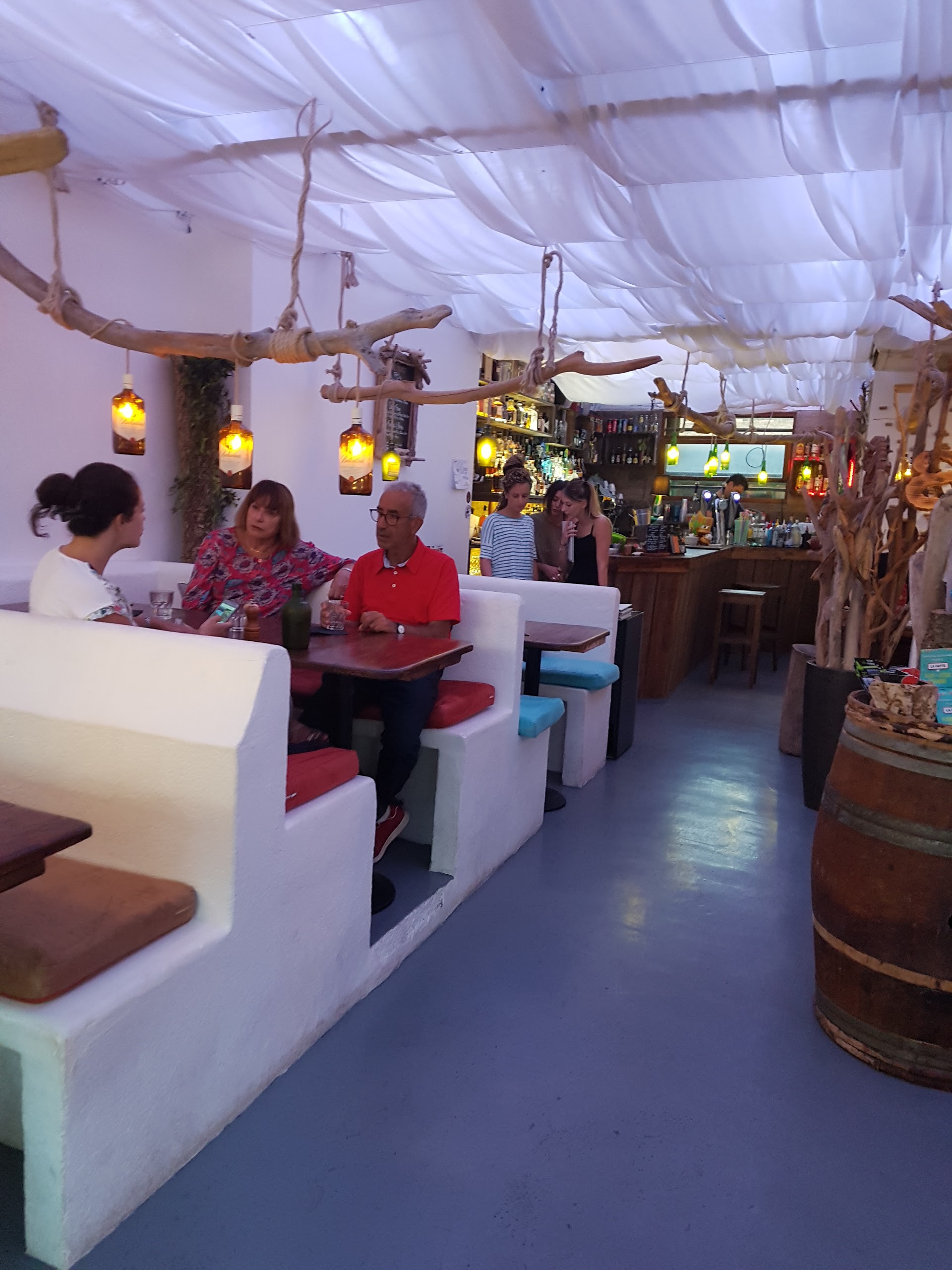Très sympa et décoré avec bon goût. Mojito parfum exotique très sympa , le rosito local pour ma part c est un peu too much mais c est une question de goût. Dessert gauffre boule de glace et crème brûlée super bon 🤗. J ai mis 4 étoiles pour le prix , 10€ le mojito et 9€ pour une gauffre me paraîssent exagéré. Je recommande en tout cas ++