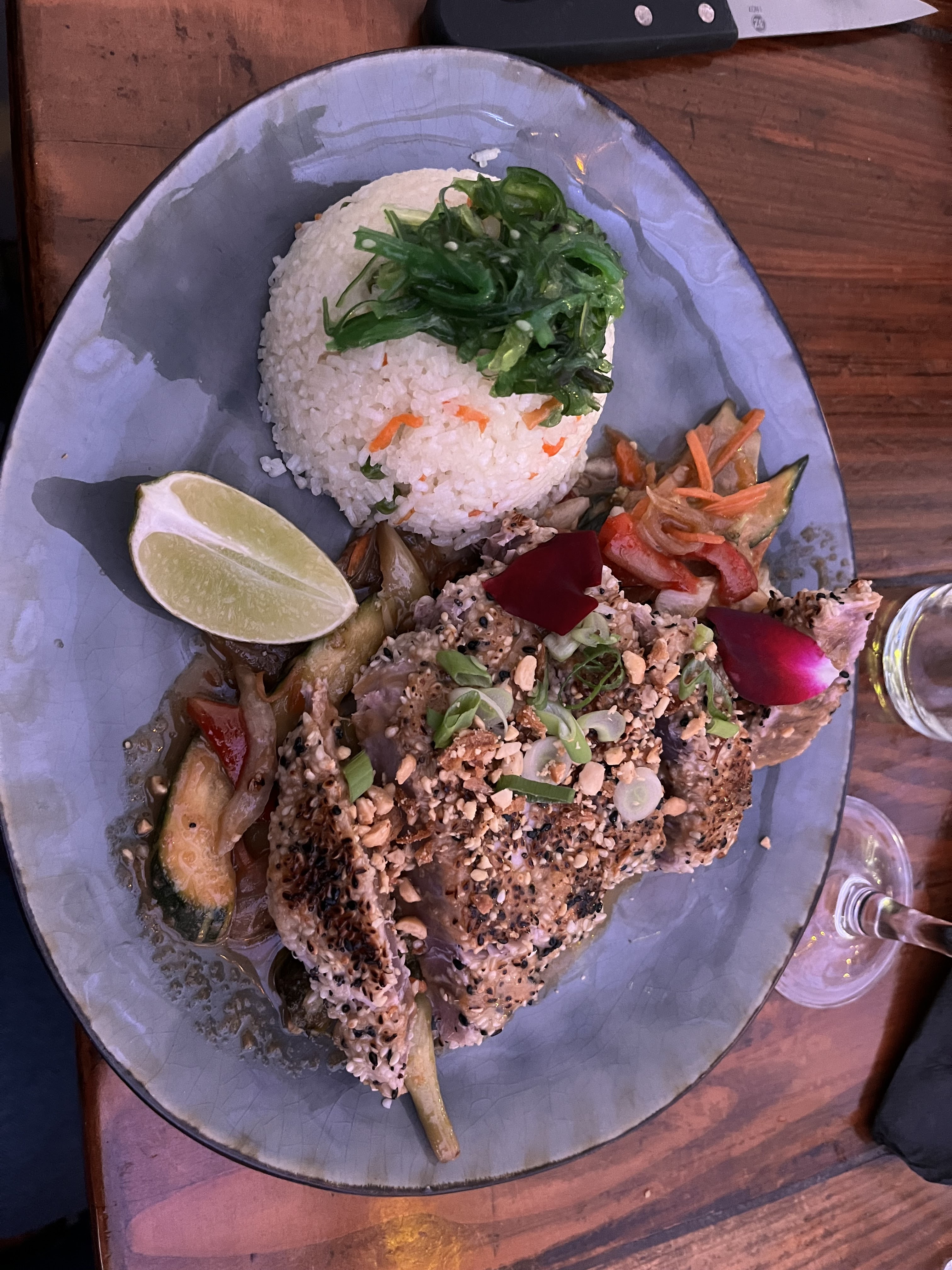 Que dire du Papaya ? Sinon qu’on y retourne dès qu’on revient à Hyeres car l’ambiance et la restauration sont là toujours de qualité Je ne peux que conseiller aux audacieux le tigre qui pleure… toujours aussi parfumé et épicé !!! Les serveurs sont sympa et ils nous ont même préparé un plat veggie top pour l’un des nôtres Franchement une belle adresse à la Capte A conseiller sans hésiter mais faut juste penser à réserver 48h avant cest un conseil !