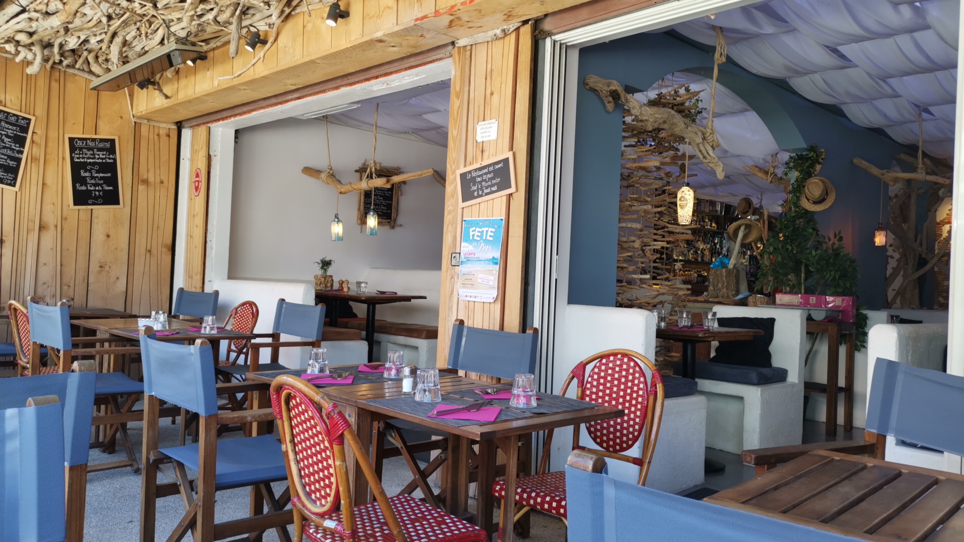 Nous avions une table de réserve samedi soir pour l evjf d une amie . La deco de ce restaurant est juste magnifique !!! Si vous aimez le bois flotte vous serez servis. Côté assiette,j ai commandé la suggestion du chef un tartare de poisson avec des légumes du riz et une sauce vierge et je n ai pas été déçu. L assaisonnement était excellent. Pour une table de 8 personnes le service a été efficace et sympa . Nous y retournerons !!!