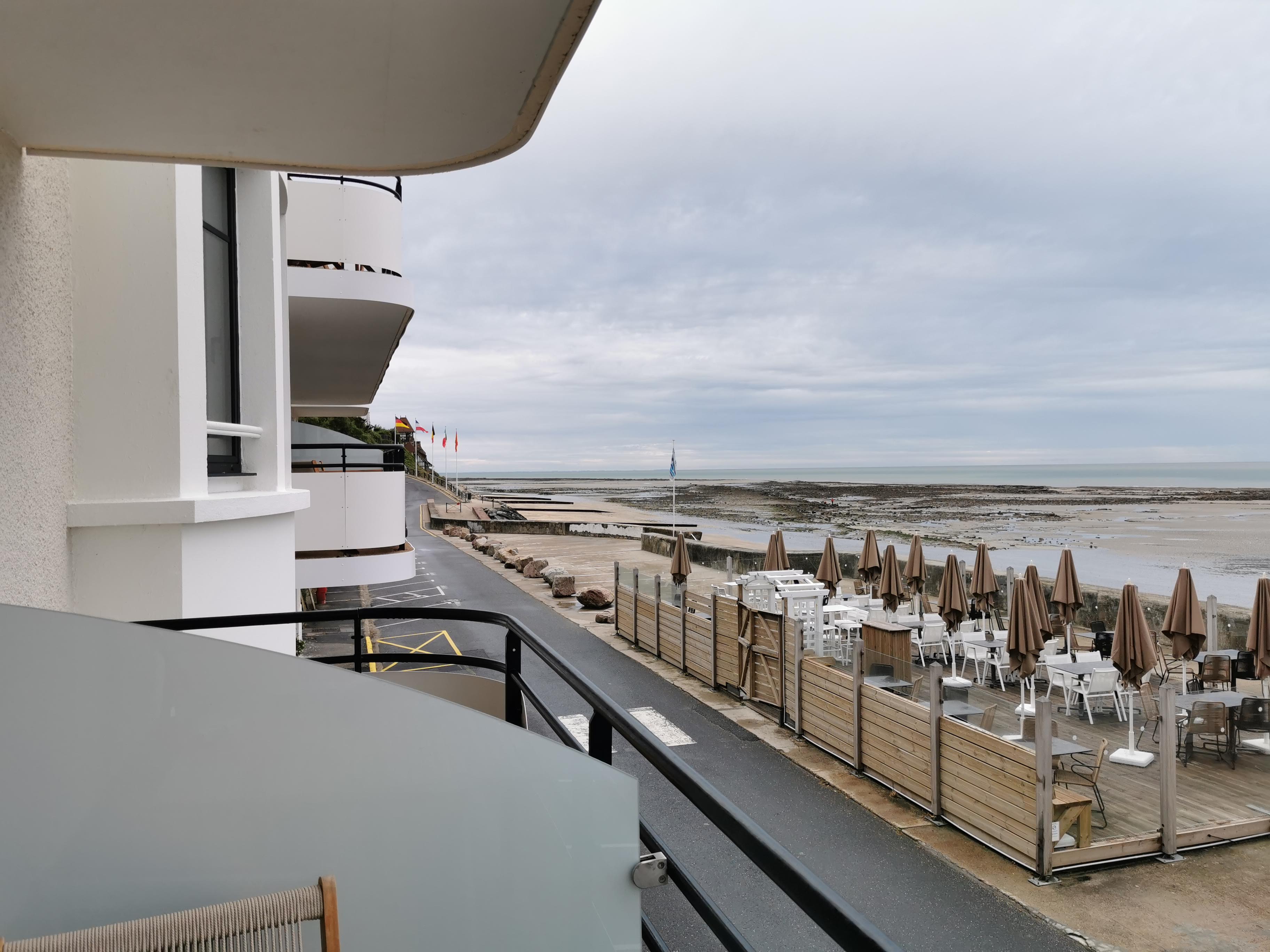 Absolument fantastique - un joyau caché ! J'ai trouvé ce super hôtel l'année dernière lors de notre séjour à Honfleur. J'ai mangé sur la terrasse, nourriture fantastique et excellent service au déjeuner. Nous avons décidé de rester cette année et nous avons trouvé cela fantastique ! Toutes les chambres ressemblent à des cabines de paquebot Art déco, avec de superbes balcons et une vue. Nous avons réservé la chambre 108 qui, avec la 208, est plus grande au coin. Tout est parfait, chambre impeccable, service excellent, y compris la charmante directrice et tout le personnel du petit-déjeuner/déjeuner/dîner….. nous avons eu du beau temps toute la semaine, donc chaque jour le petit-déjeuner sur le balcon - merci pour les œufs - sur la plage ( 10 mètres à pied !) avec le chien, déjeuner, vin et collations sur le balcon et dîner ! Le parking est très pratique et sécurisé. J'adore tellement que nous avons réservé pour une semaine en septembre. Vous obtenez ce que vous voyez ici, sans prétention, et tout le personnel est génial… Les Jardins de Coppelia (voir mon autre critique) n'est rien en comparaison par rapport à cet endroit !