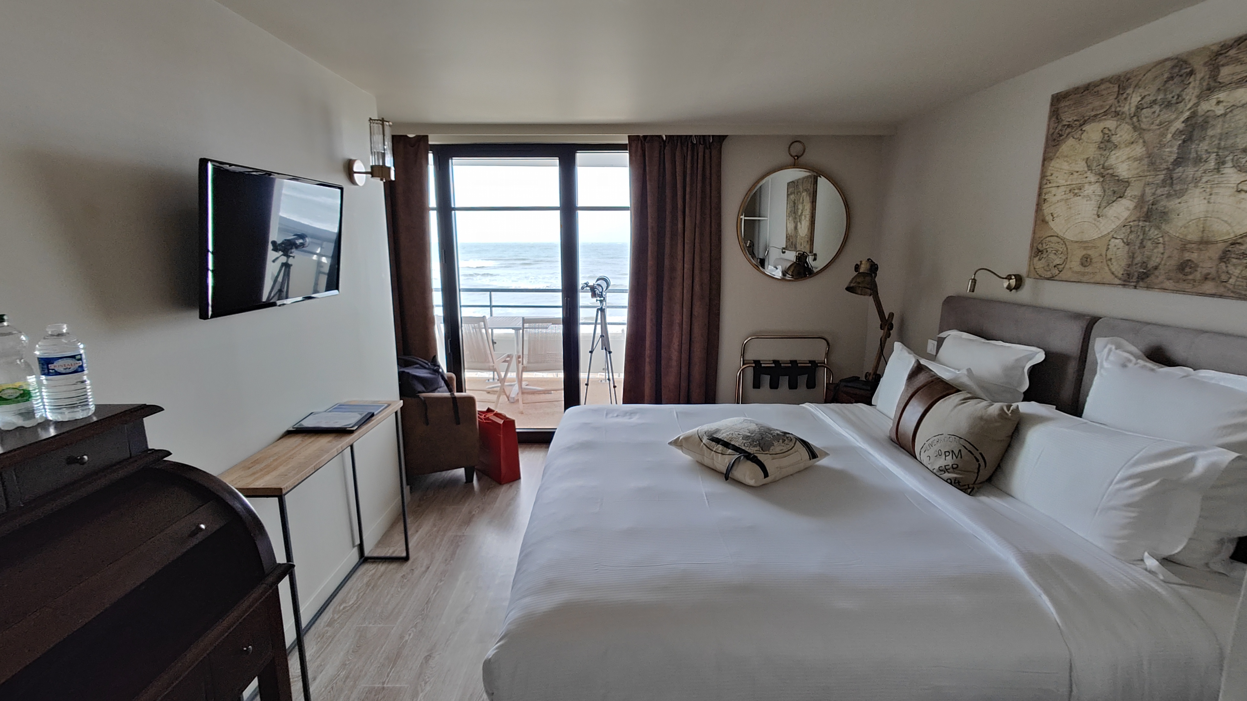 Nous avons vécu un séjour dépaysant grâce à la situation exceptionnelle de l'hôtel. Voir la mer depuis son lit hyper confortable au réveil, quel bonheur ! La décoration est raffinée, dans le thème croisière et partout, netteté et propreté. Petit déjeuner parfait