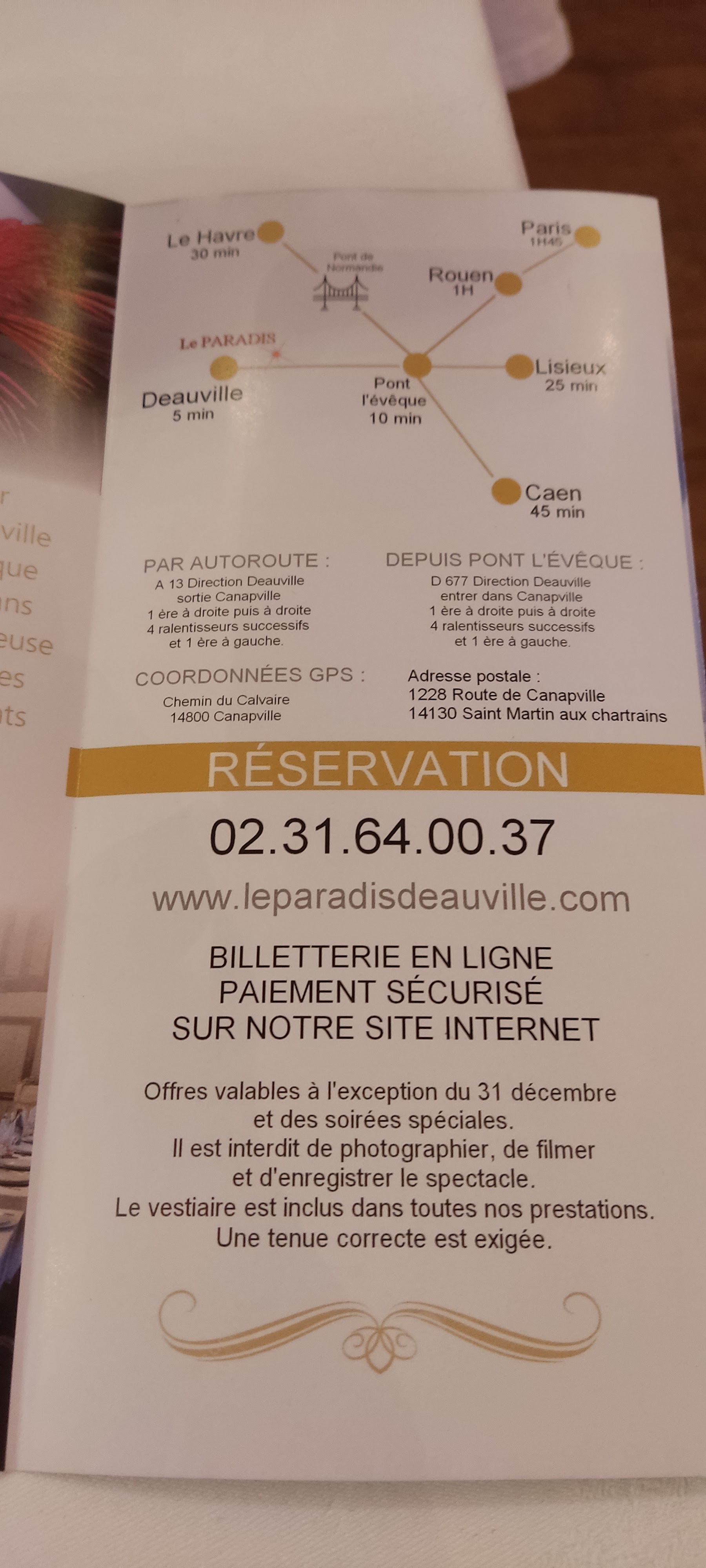 Très belle journée au Paradis Deauville. Un accueil chaleureux, le service est impeccable, le spectacle de qualité, nous avons passé un agréable moment que nous recommandons. Encore un grand merci à toute l'équipe. Liliane et Pierre des Normands.