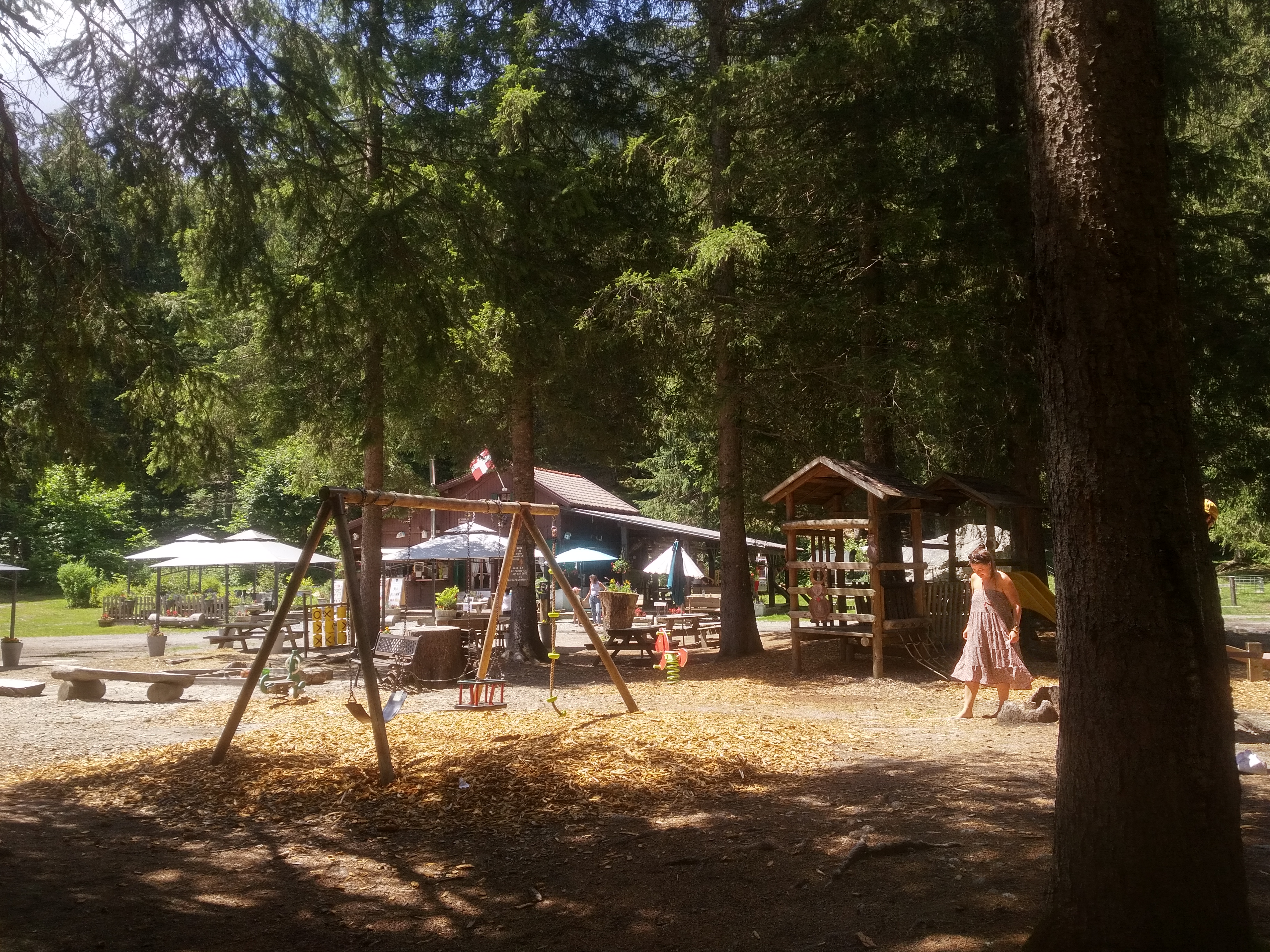 Charmant petit café, bonne bouffe, avec une aire de jeux amusante dans la forêt. Un cadre magnifique et les enfants vivent en jouant dans le ruisseau, dans l'eau claire de la montagne, en pratiquant la slack line et en vivant des mini-aventures.