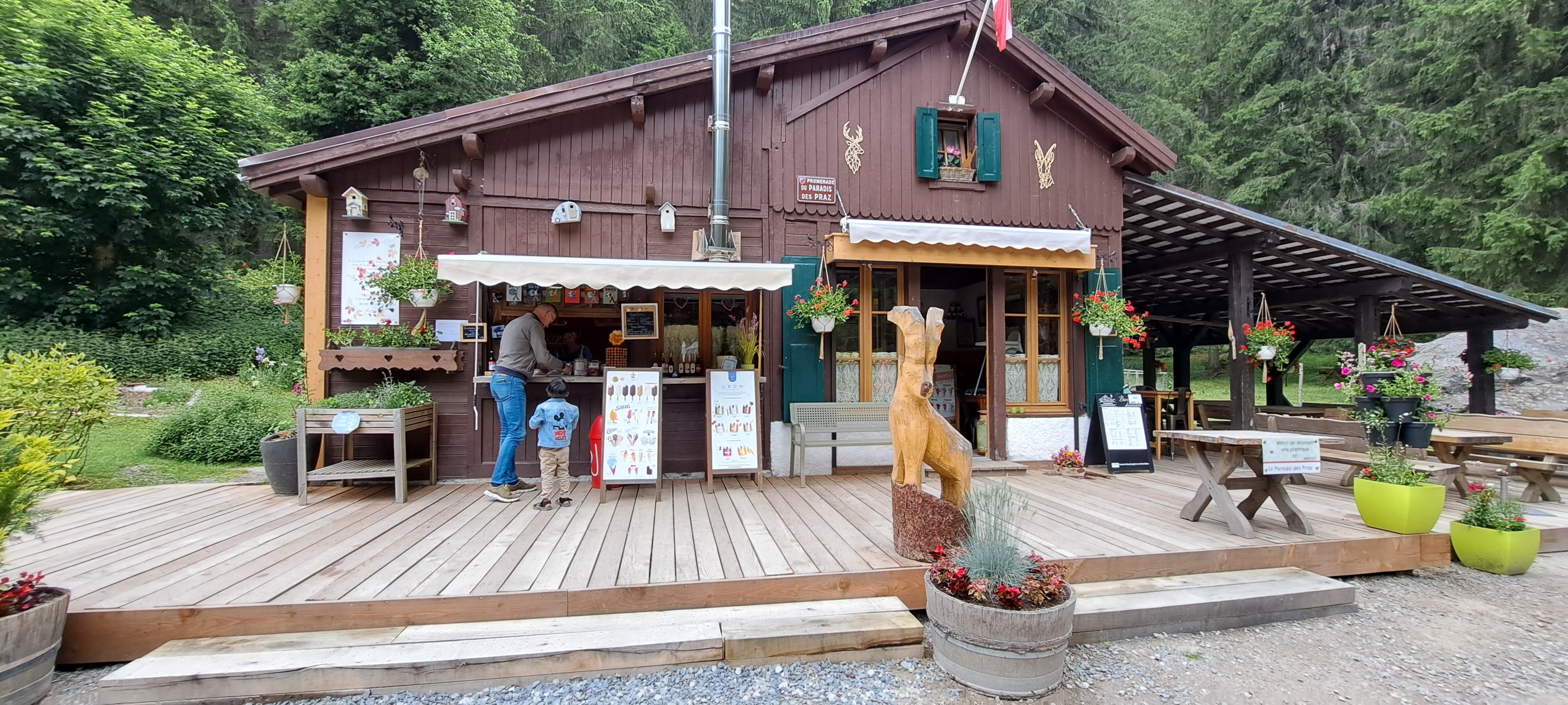 Le Paradis terrestre existe et il est aux Praz de Chamonix,un havre de paix dans un écrin de verdure qui ravira les grands et surtout les petits avec promenade à poneys,aire de jeux et de pique-nique,pateaugoire naturel et un bar-restaurant très accueillant proposant notamment de succulentes crêpes sucrées et salées à noter aussi un personnel très serviable,un must!