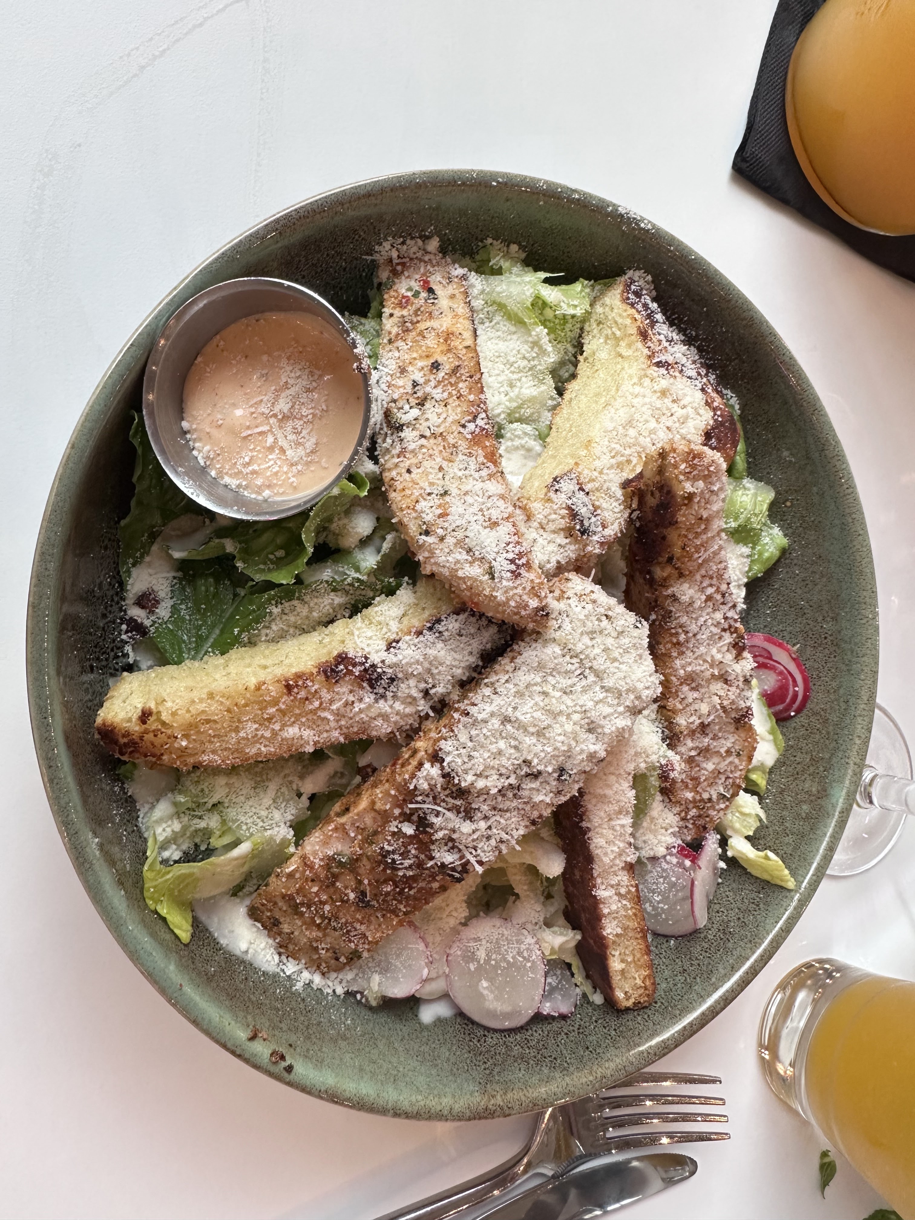 Délicieux toasts chauds au pastrami, salade Paradis bonheur au top ! Service efficace et chaleureux de la part de Carolina 😀