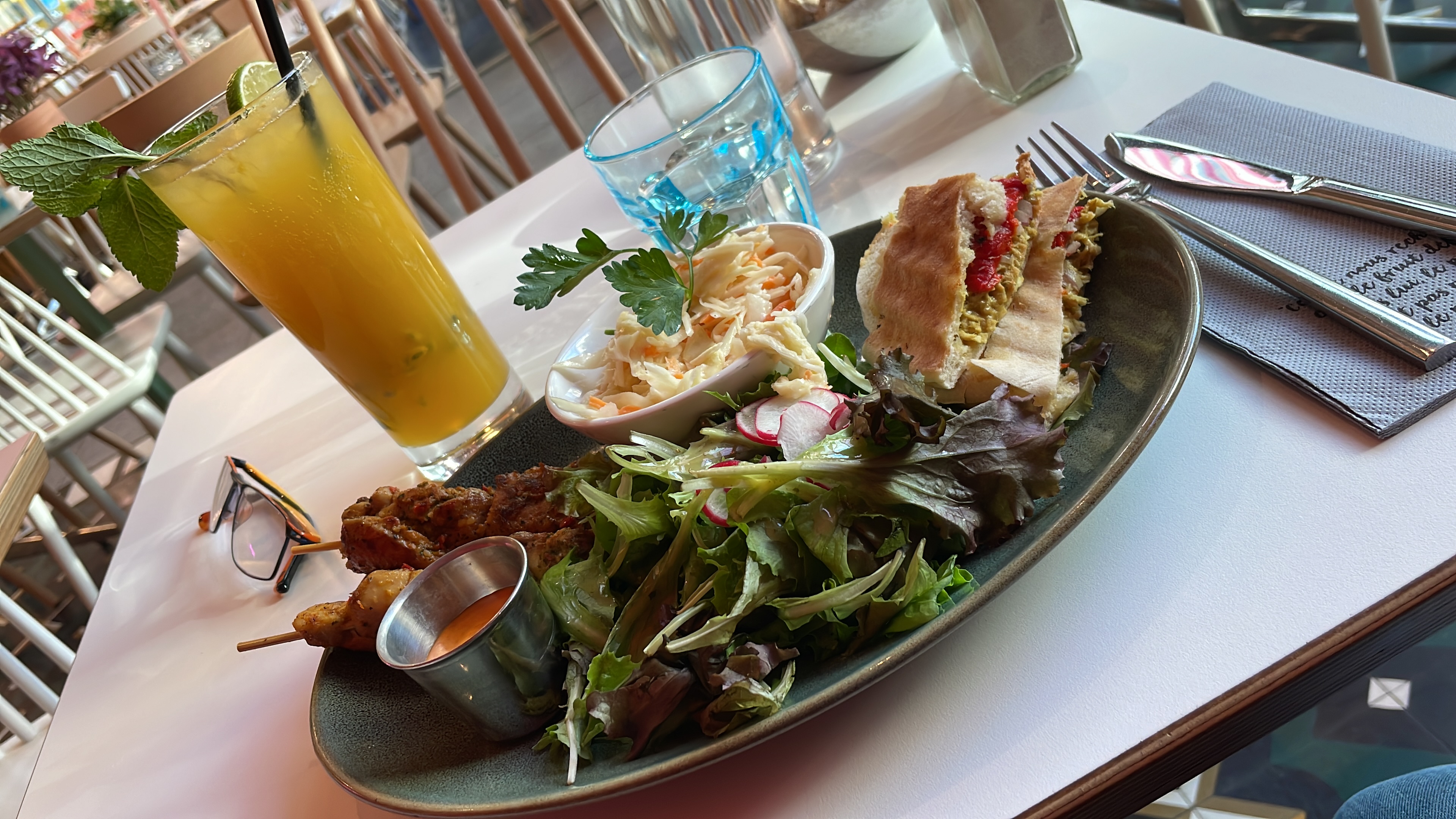 Travaillant juste à côté, j’ai essayé ce resto avec une collègue pour notre pause déjeuner. Super déco, excellent accueil et service, mention spéciale pour Yanis notre serveur ! Ça fait du bien d’avoir un serveur souriant et attentionné. Les plats sont bons, les portions sont bien adaptées. Le seul petit bémol, j’aurais mis un peu plus de rhum dans mon cocktail. En tout cas, j’y retournerai avec grand plaisir.