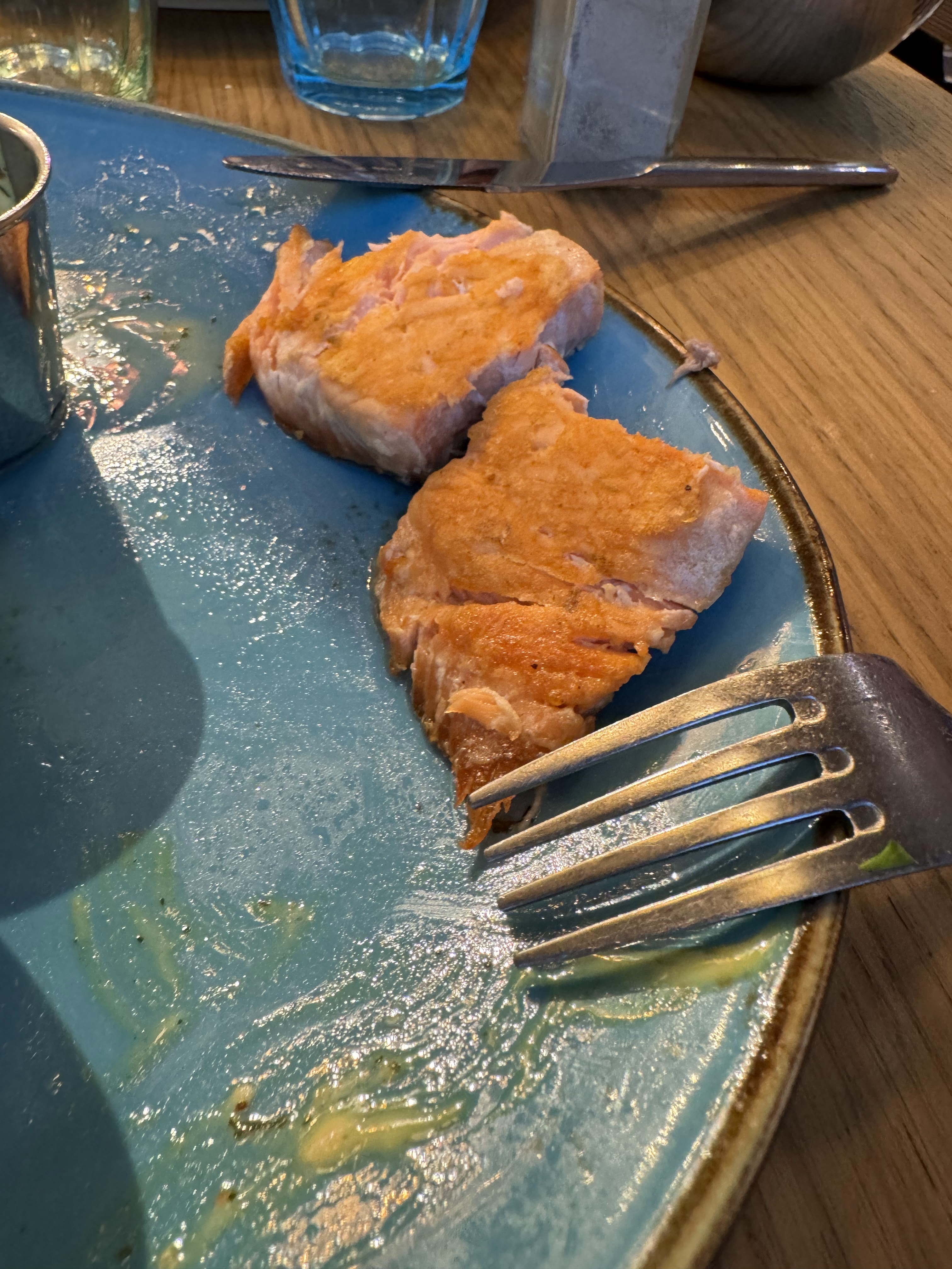 Vraiment déçu par la qualité de la nourriture. Plus précisément les pitas froid et mou . Le pavé de saumon était très sec et écrasé. Je comprends pas comment on peut se rater sur des pitas et un pavé de saumon .