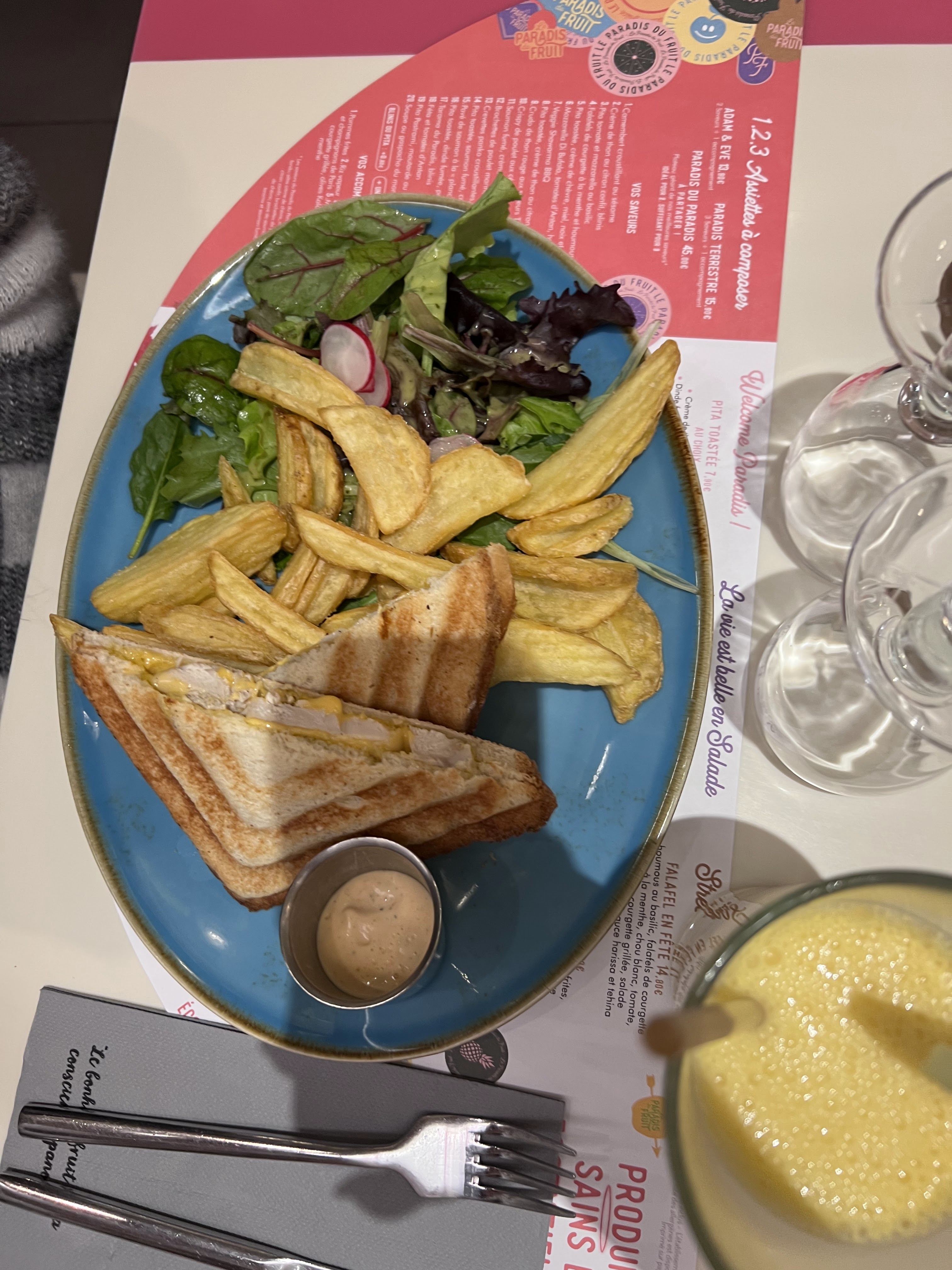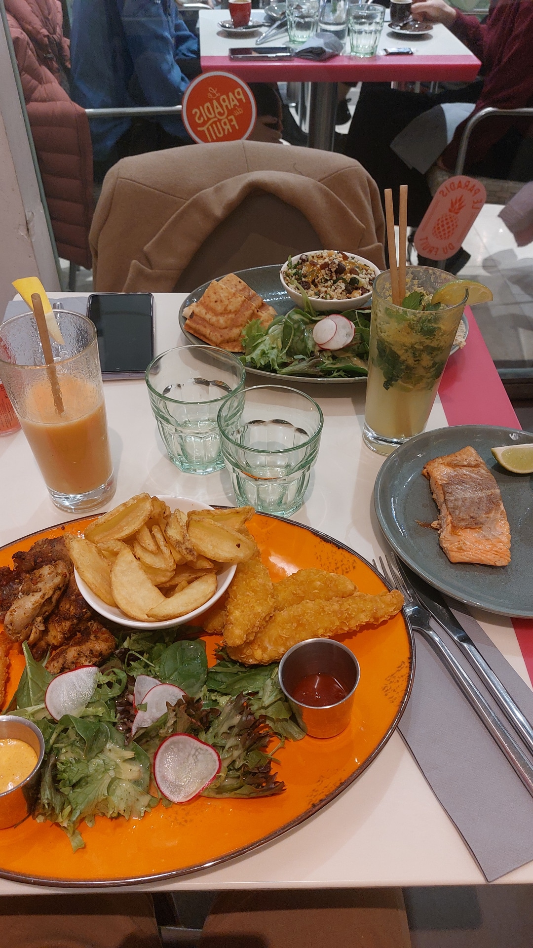 Je me suis régalée nous avions pris des tartines d'avocats, le burger et le poulet et vraiment nous etions caller impossible de manger un dessert après. Le point négatif est l'attente pour aller manger et le manque d'intimité vraiment les tables sont touche à touche et c'est dommage car on y mange bien.